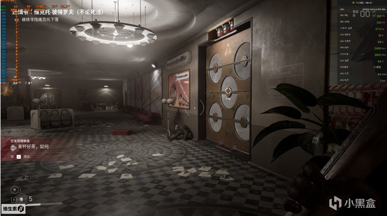 1080P高画质,开启光追中等,DLSS质量自动,帧数是 52-79 帧数,平均 64 帧。DLSS开启超级性能有 49-1148 帧,平均 166 帧。