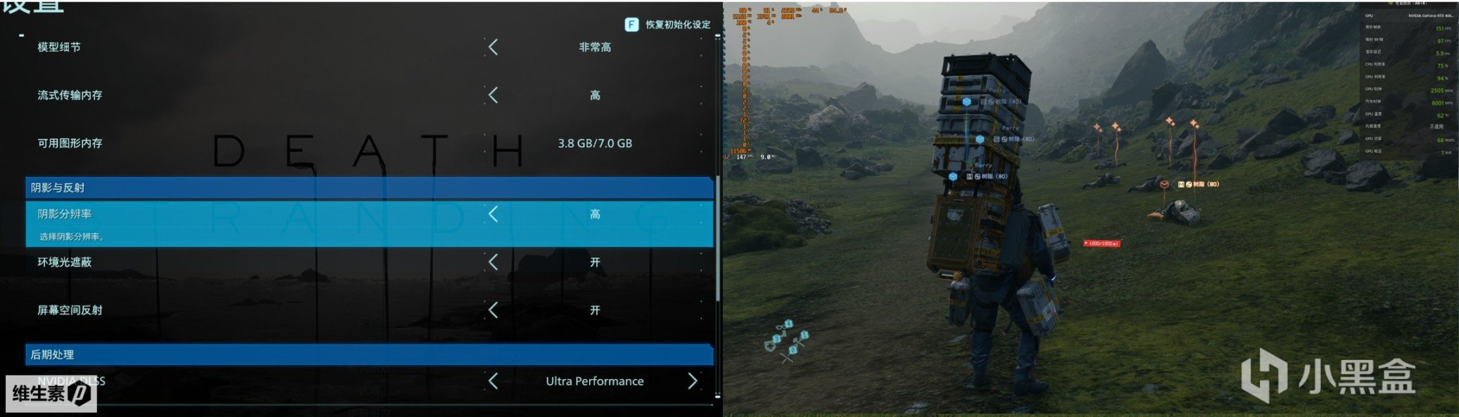 死亡搁浅,开启 2560 分辨率和超高画质,DLSS开启超级性能,帧数表现为 132-169帧。