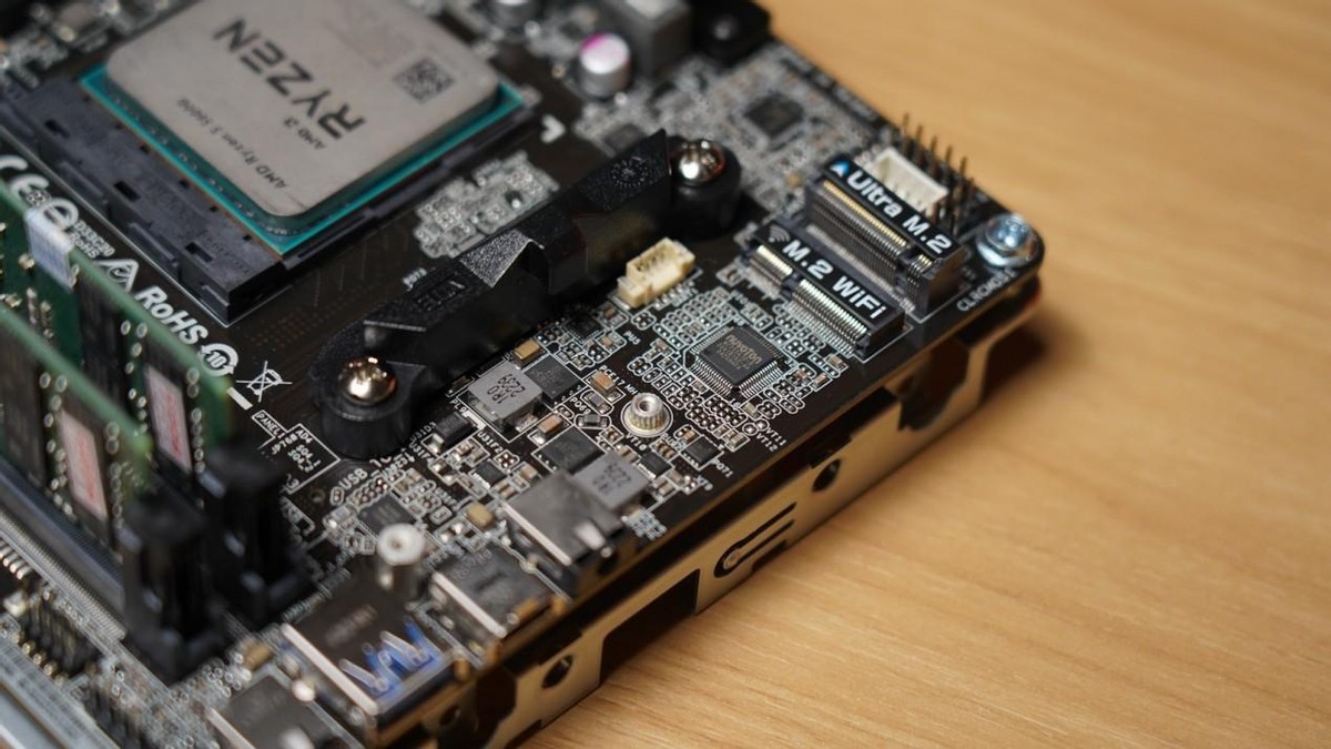 除了外观之外,它的内部设计也非常出色。作为一款准系统,它的CPU、内存、硬盘均为留空的设计,用户可以根据自己的需求自由选择65W功耗的AM4处理器(5600G/5700G),以及DDR4内存(PS:这个只支持笔记本内存哦)进行安装,硬盘方面提供有两个PCIe 3.0的M.2 接口以及两个SATA 3.0接口,非常够用。此外,它还提供了千兆有线和Wi-Fi无线网络连接,让用户可以轻松联网。