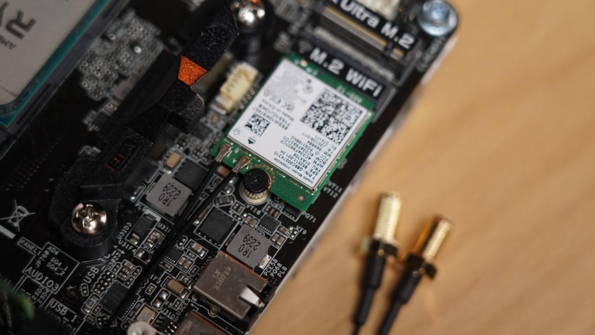 主板提供了两个PCIe 3.0的M.2接口,正好下面那个可以用来安装wifi模块,上面的M.2 2280接口装上SSD,所以安装的顺序是先安装网卡,接好天线之后再安装SSD固态硬盘