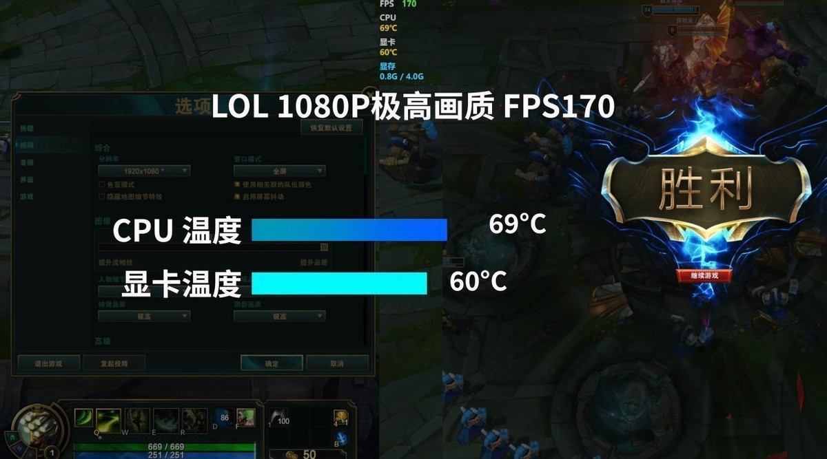 LOL 极高画质2K平均90帧,1080P分辨率下能达到150帧,游戏可以流畅运行。在游戏中CPU、显卡温度同样保持得很好,基本在70度以内,不用担心高温卡顿的问题,散热表现可圈可点,这里提醒一下,如果对噪音比较敏感的话,可以把原装散热器自行更换4热管静音散热器。