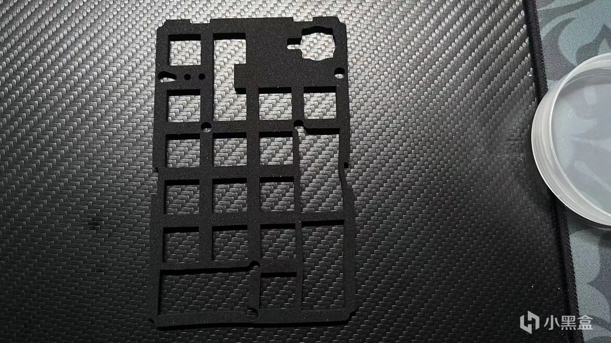 底棉採用了硅膠的填充方式,同時他也採用了我最不喜歡的硅膠柱。硅膠開模的填充方式能極大的填充鍵盤底部的空間,減小空腔音的存在。但是缺點就是太硬了會導致GASKET結構的鍵盤並不ga(但是這是個類top所以沒啥關係)