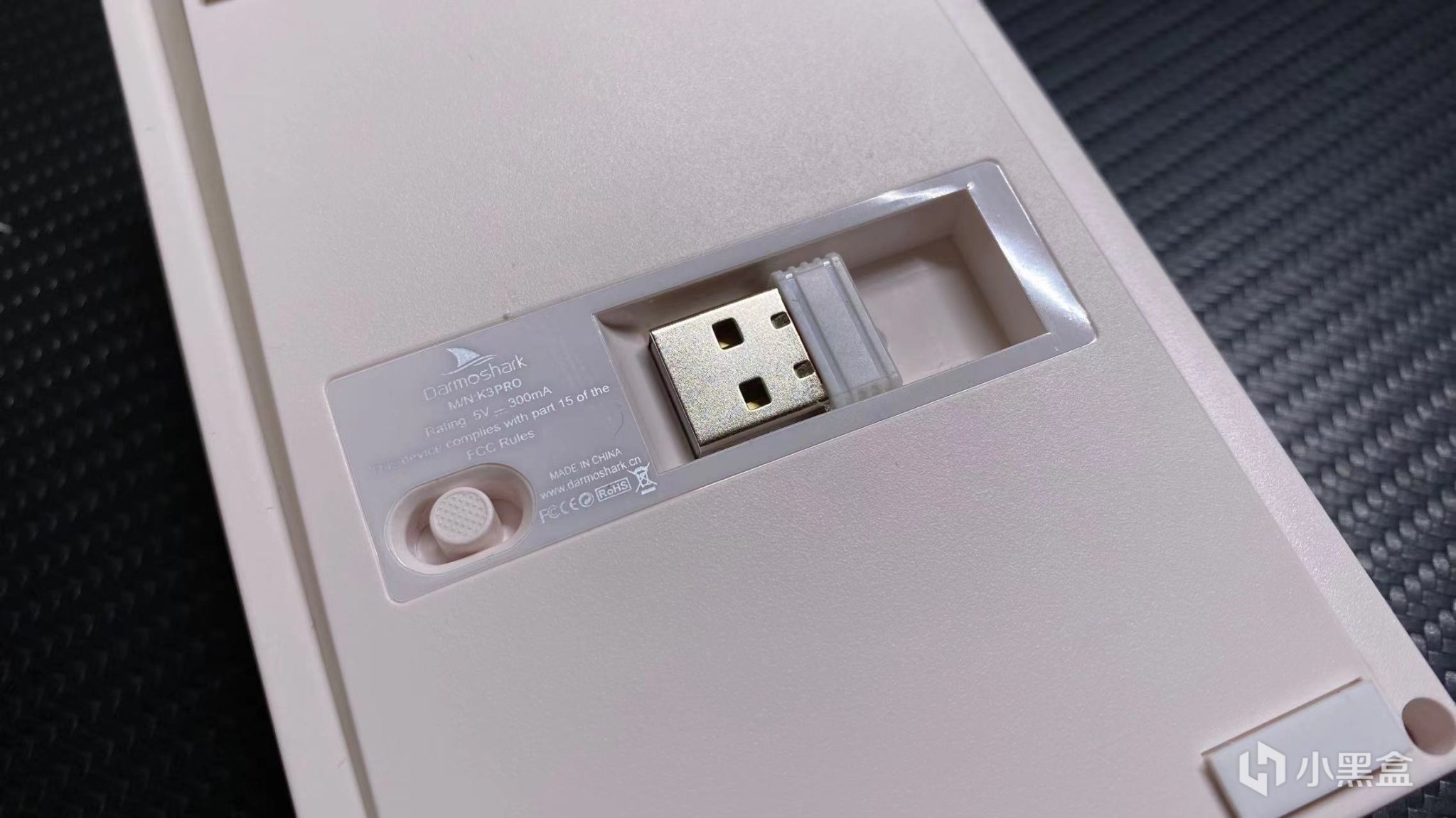 背面的模式切換開關依舊是沒有印刷字符,但是開兩次就知道(下一批次會改善這個問題);之後就是2.4g收納倉了,這個收納倉怎麼說,採用了一塊磁鐵磁吸的設計,但是不大好的就是,他這個如果經過暴力丟甩的話,會掉(但是誰閒着沒事耍這個玩啊。。。)