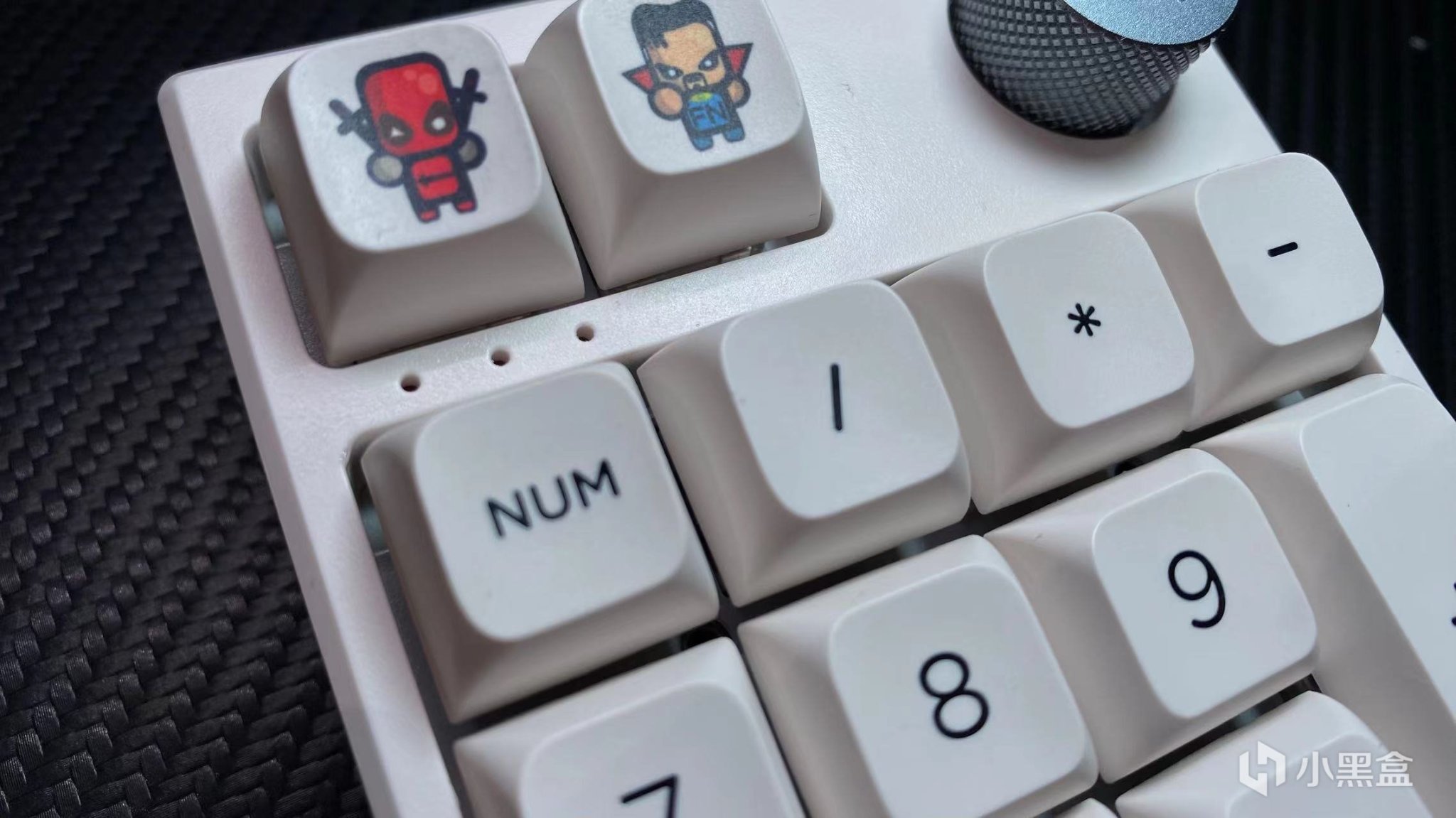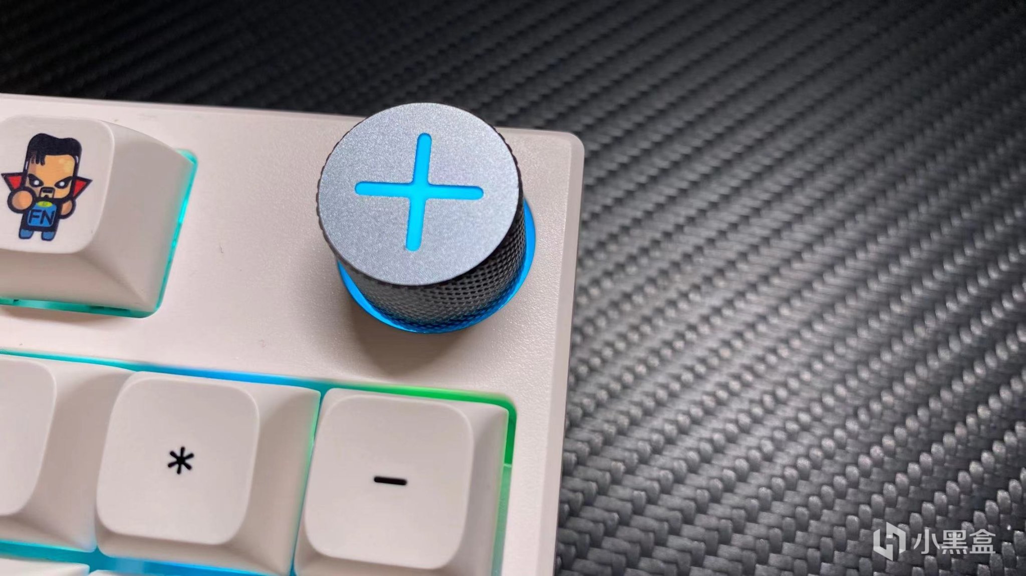 鍵盤右上角就是一個小pad設計,並且在旋鈕位置做了一個十字開槽的設計,可以讓rgb燈光透過旋鈕漏出來,這個怎麼說呢就還可以,仁者見仁智者見智吧,畢竟有的人喜歡有的人不喜歡,他不能做到全部都喜歡的一個程度