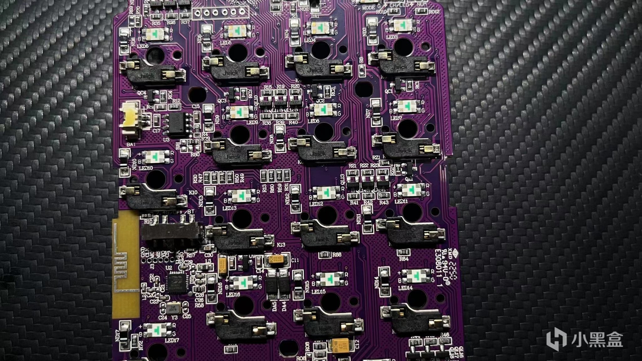 pcb的背面可以看見,鍵盤採用了一個熱插拔軸座,支持三角軸以及五角軸,支持市面上絕大部分軸體(部分光軸,靜電容軸等除外)那麼有人問了熱插拔熱插拔是啥意思呢?這裏解釋一下,熱插拔最簡單的理解就是軸體支持方便更換,就是這個軸你用膩了,之後直接把這個軸拔下來,換成別的軸體就行,這就是熱插拔的意思。