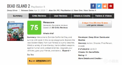 就在刚刚,《死亡岛2》评分新鲜出炉!其中IGN 给出了7分,而M站媒体均分达到了75分。