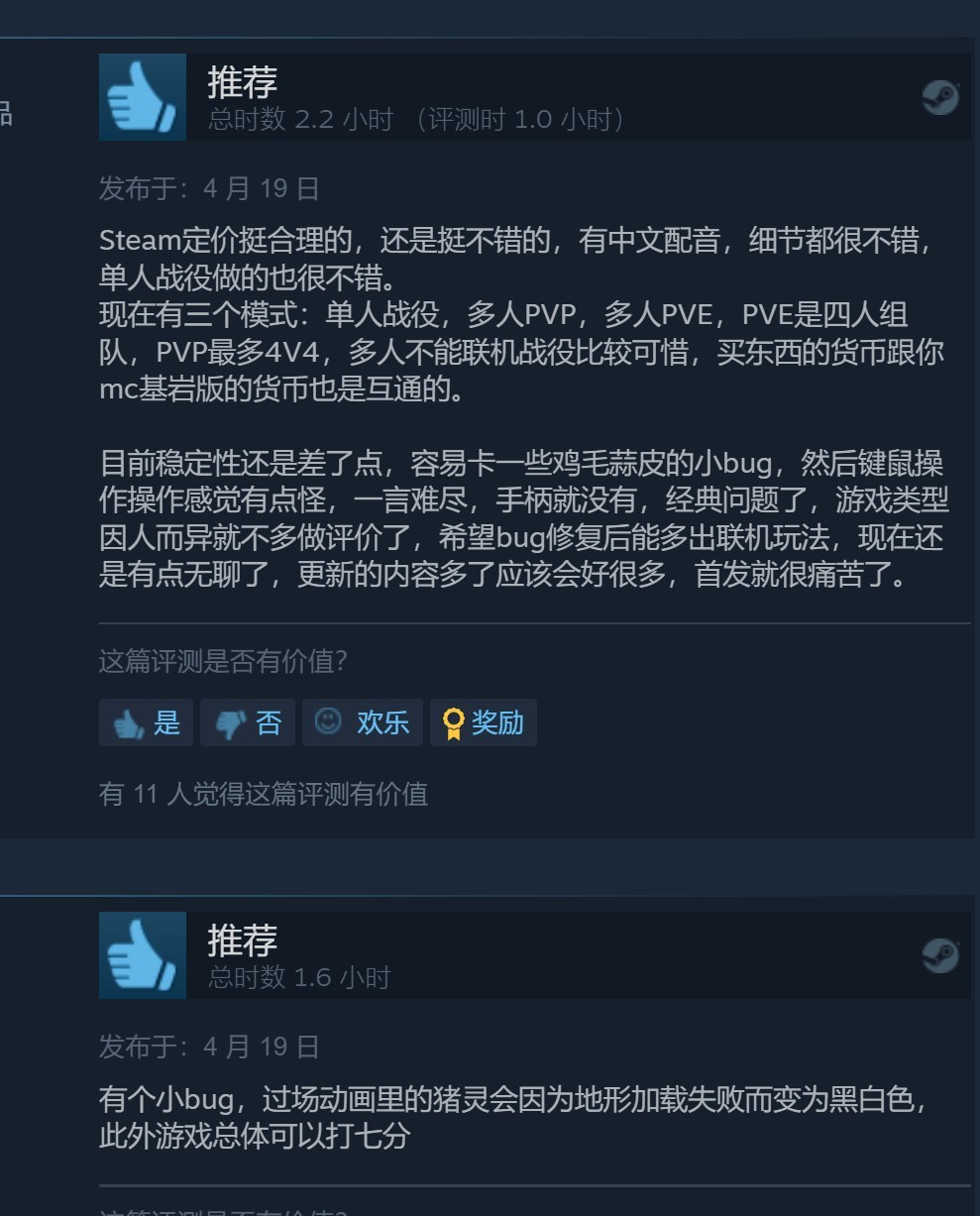截止到目前,《我的世界:传奇》Steam评测238条,好评率72%,获得玩家“多半好评”评价。