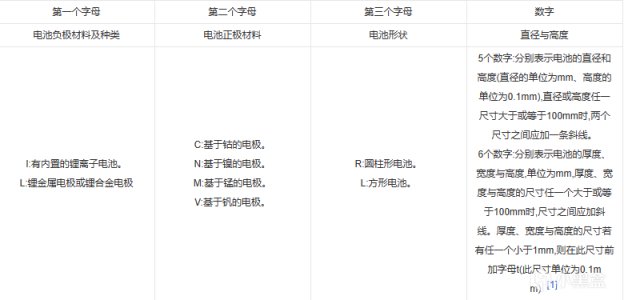 由于柱状电池有着较高的安全性和便携性,因此作为电芯被绝大部分充电宝商家采用。此外少数电芯可能会采用类似手机电池形状的方形锂电池。这种形状的电芯可用三个字母和一串数字表示,相关字母的含义可查下表: