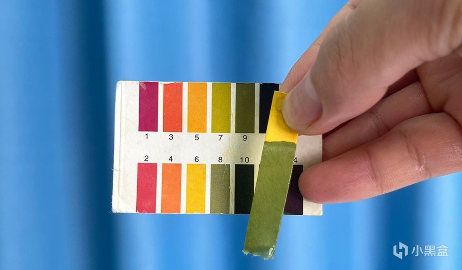 温和度测试,溶于清水中,测试一下PH值,PH值9左右,相对于弱酸性的皮肤表面,不太亲肤。