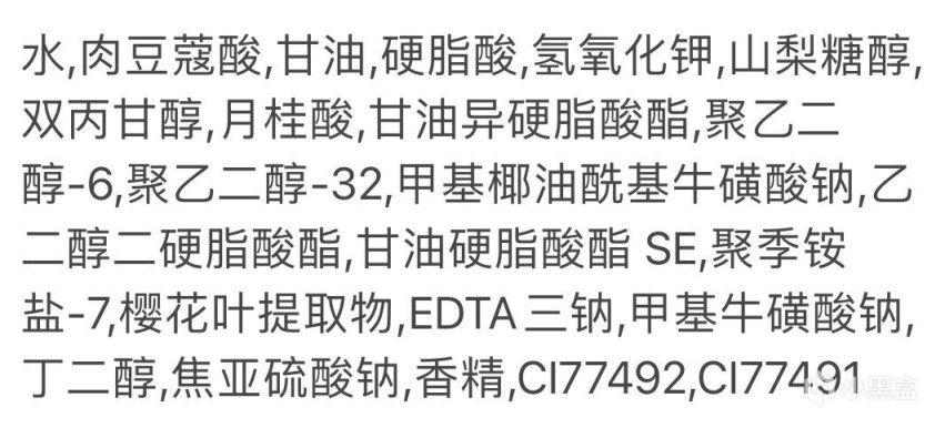 再看看成分,清洁主体是以肉豆蔻酸、硬脂酸、月桂酸,复配强碱氢氧化钾,构成的皂基体系,排在成分表第十二位的是氨基酸表活,甲基椰油酰基牛磺酸钠。