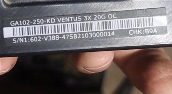 从谍照看,该卡已经是零售正式版的形态,有完整的型号、SN编号,整卡三风扇,体积庞大,要占据3.5-4个插槽位。