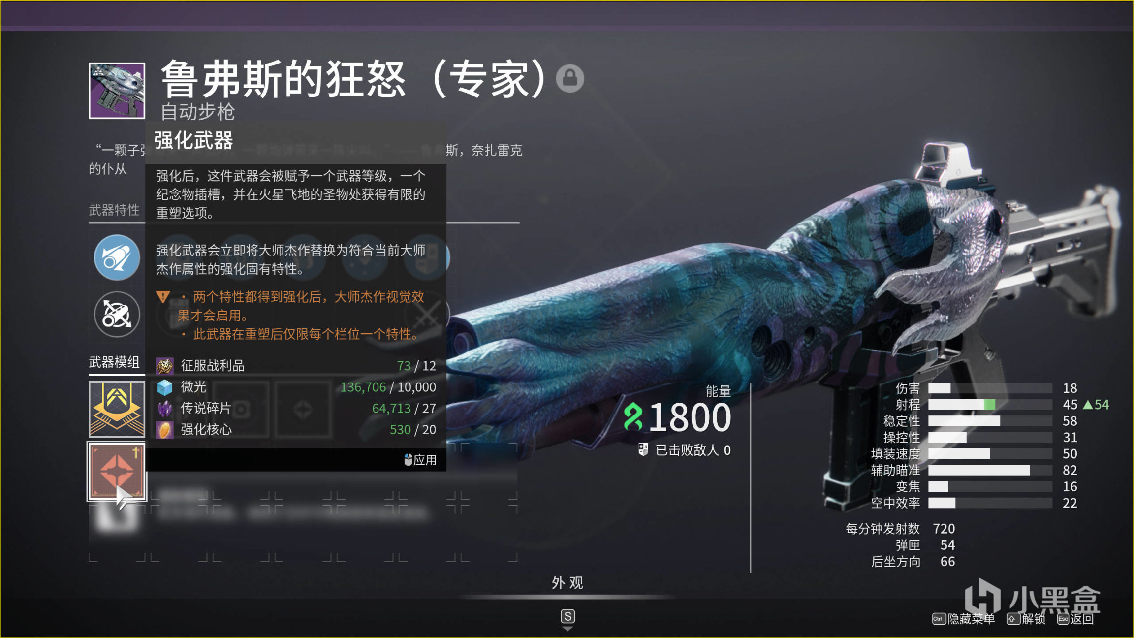 ① 點開武器,在第三個模組插槽中點擊強化武器,即可把這把武器變成強化武器(武器大師等級越高,需要花費的材料越少)