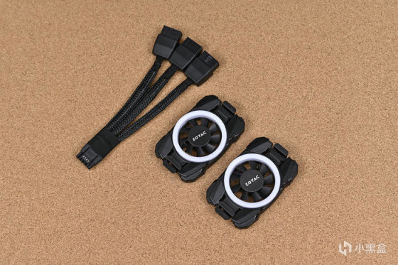 附件方面附贈了 1 根 16Pin 轉 3x8Pin 電源線、2 個天啓之翼 2.0 RGB 散熱小風扇。