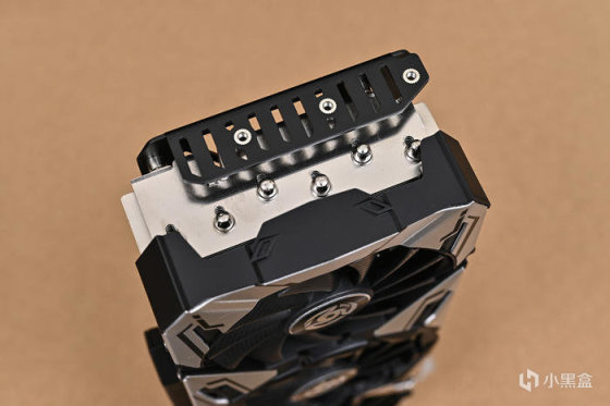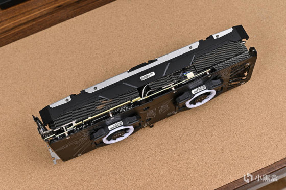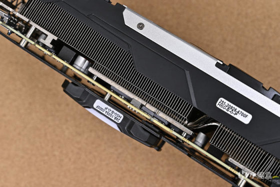 顯卡尾部可以看到 6 熱管設計,背板上還有三個支架固定螺孔。