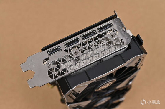 接口方面配備了 3 個 DP 1.4a ( 最大支持 7680x4320@60Hz)以及 1 個 HDMI 2.1 接口(最大支持 4K 120Hz HDR, 8K 60Hz HDR),擋板爲 2 槽位設計,並做了密集開孔散熱,不鏽鋼鍍鎳設計長久不生鏽。