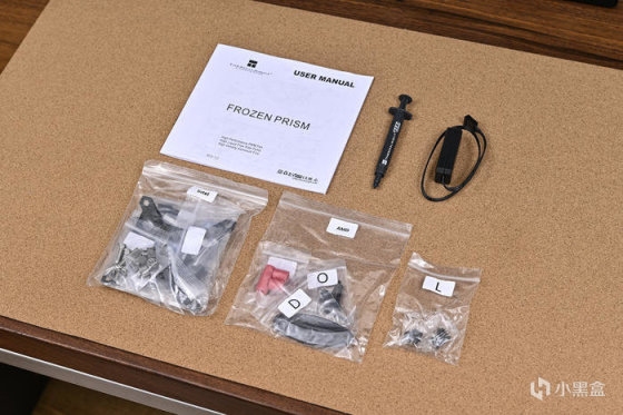 附件包括安裝:1x 使用說明書、1x TF7 導熱硅脂、1x 一分三風扇轉接線、1x intel 扣具包(含 LGA2066、2011、2011-V3、1366、1200、115X、1700)、1x AMD 口舉報(含 AM4、AM5)、4x 扣具固定螺絲。