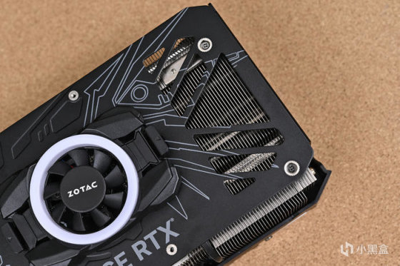 側邊中間的 ZOTAC Logo ,爲鏡面半透明呼吸燈,點亮後會有 ARGB 燈效。