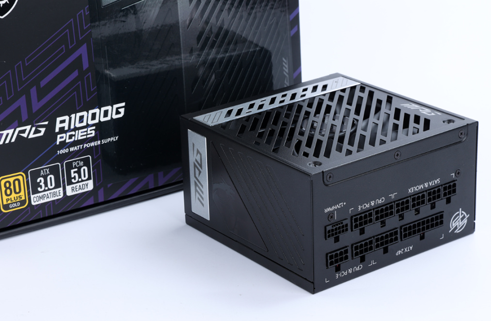 电源方面,对于4080及以上显卡,咱们还是首选ATX3.0规格的新电源,今天装机使用的是微星MPG A1000G PCIE 5金牌全模组电源,为了那该死的虚荣心,定制的模组线,咱也给安排上。电源直出12VHPWR供电,最高可以实现单线600W的供电,搞定4080更是不在话下。电源采用全日系105℃高性能电容,并拥有80Plus金牌认证,持续高效稳定输出有保障。电源内置一颗13.5cm高性能静音风扇,支持智能启停,可以有效控制电源运行时的噪音。