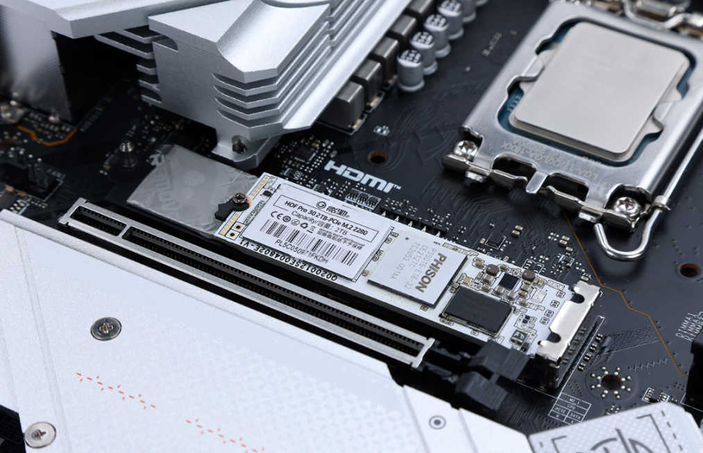 主板带5个支持PCIE 4.0的M.2固态硬盘位,支持快装。近CPU这个,散热装甲也支持免工具快拆。虽然时下固态不贵,但是一块2T的HOF PRO30 M.2固态,应该足够满足你的生产力和游戏需求了。