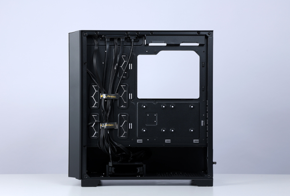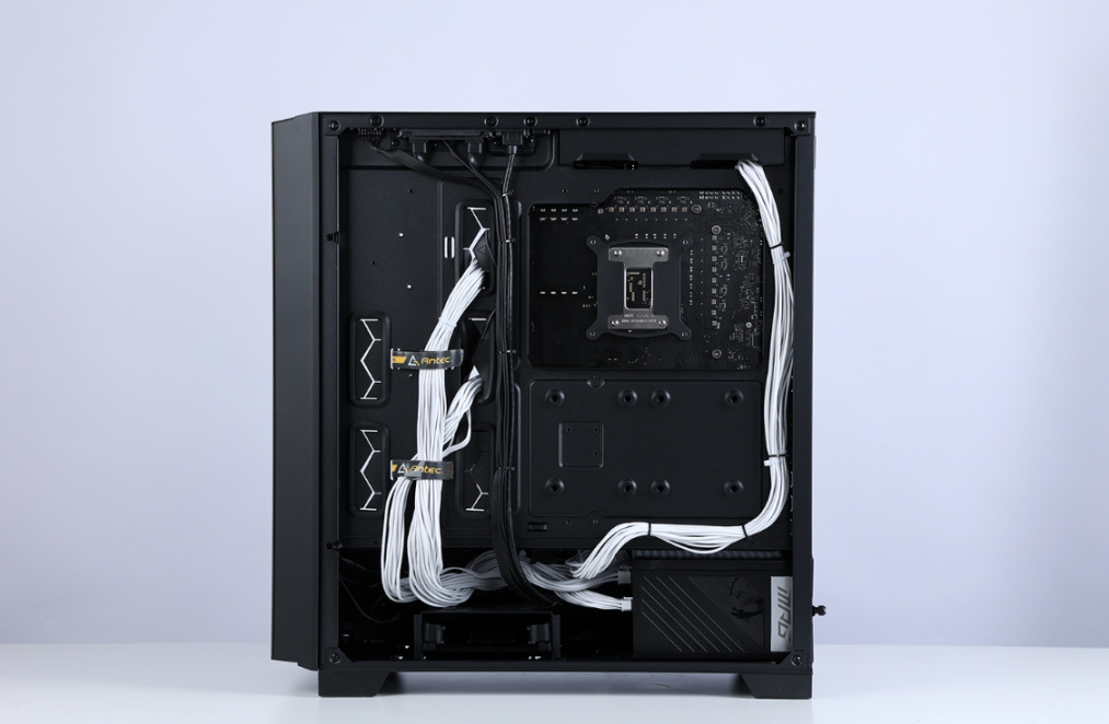 机箱背部提供了充足的理线空间,机箱所有的过线孔上均有柔软的橡胶垫圈,可以更好的保护线材,机箱附赠理线魔术贴,对玩家理线非常友好。