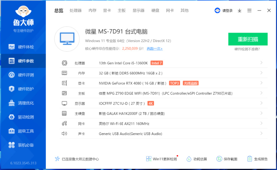 鲁大师整机配置验证。