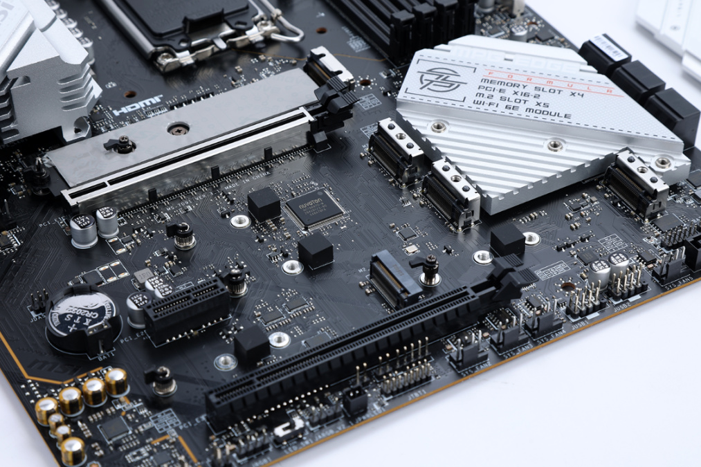 作为一款网红主板,微星Z790刀锋颜值方面拿捏相当到位,黑色PCB上大面积银色金属散热装甲的设计,可以适配各种主题装机。配置方面,16+1+1相VRM智能供电设计,搭配双8Pin外接CPU供电,搭配13代酷睿全系处理器使用都没啥问题。
