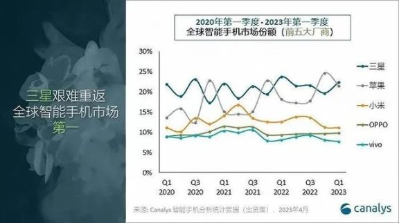 2023年第一季度,三星手機憑藉微弱的優勢重新回到了份額第一的位置。儘管三星在中國銷量不佳。但是在世界範圍的銷量還是可以的!