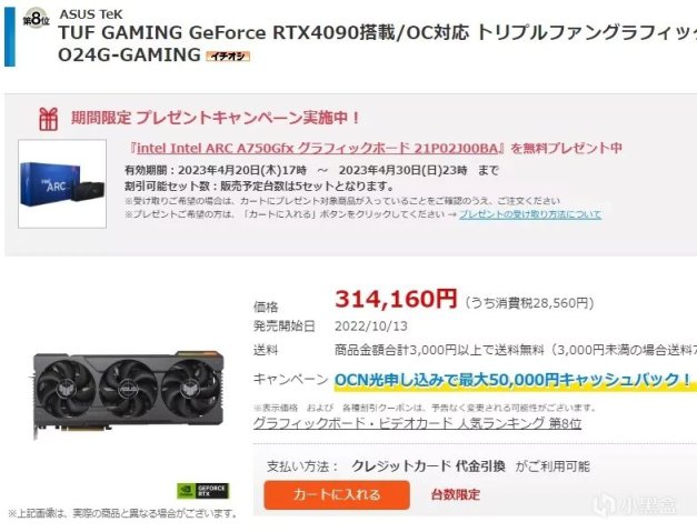 一位零售商在卖华硕RTX 4090 TUF,售价14999元,但为了进一步提高显卡的诱惑力,让更多用户购买,该零售商将附赠一张英特尔A750显卡