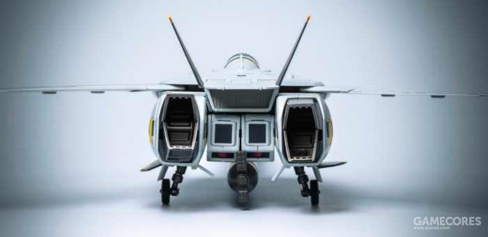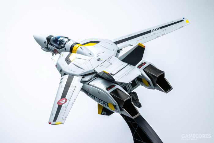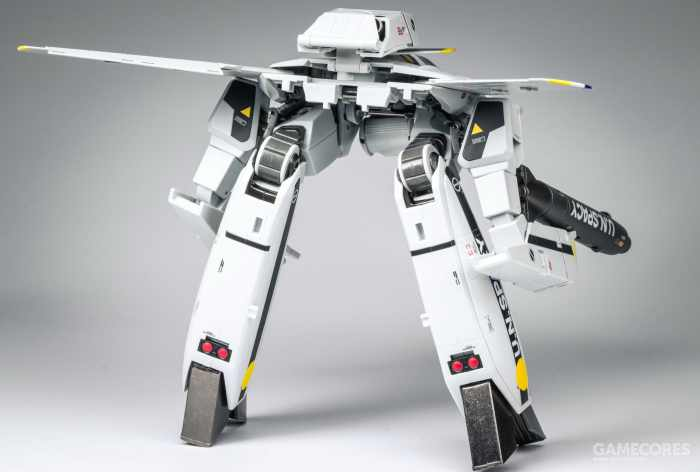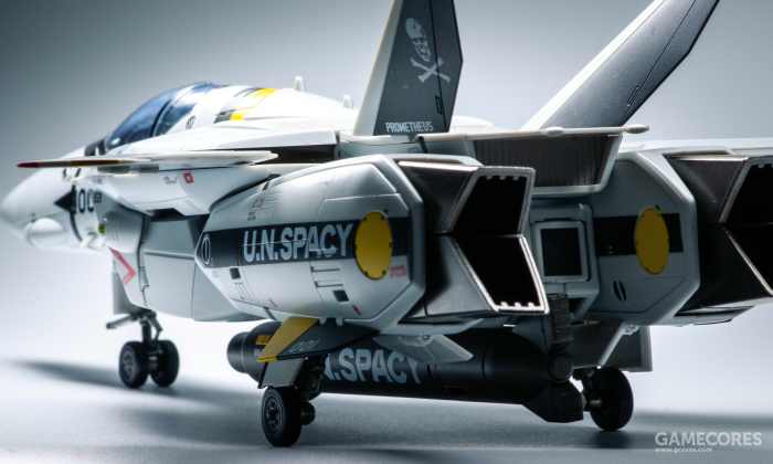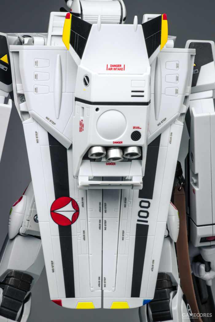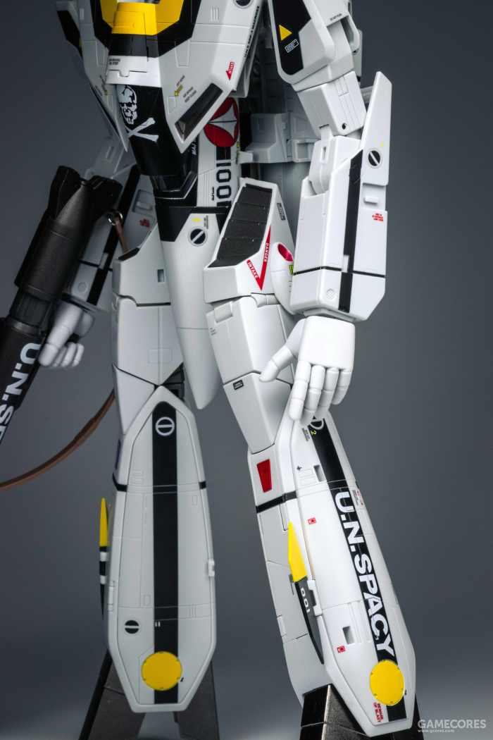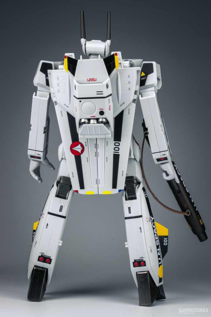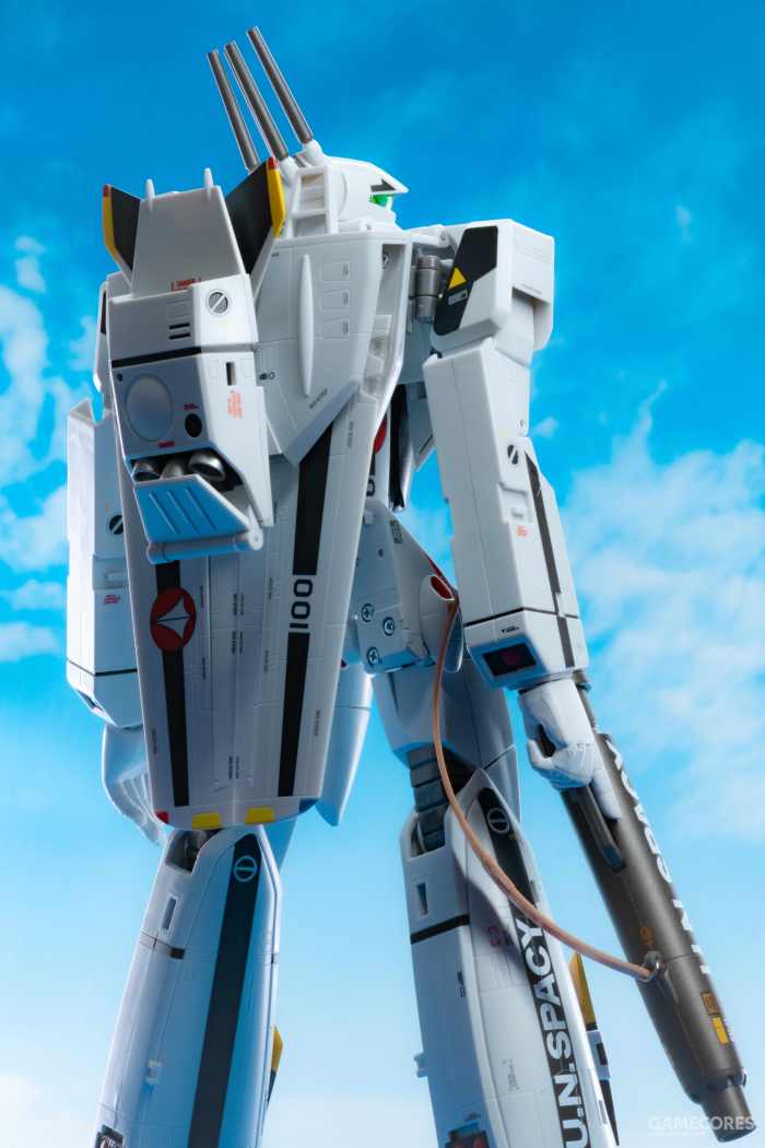 - 复杂变形,变形结构就是类似于变形金刚老思路,片片堆叠的设计机构。比较起来,因为VF-1系列的授权商品太多了,大部分的变形设计都是趋同。因此,机体变形后的机构没有现在老变那些花心思做遮盖,单纯靠锁扣固定而已。而对于2020年1128日年上市的商品来说,这样的技术已经有些落后了。当然,是否应用新技术跟商品的定位与售价有关。