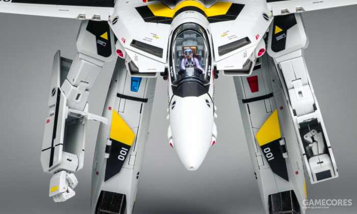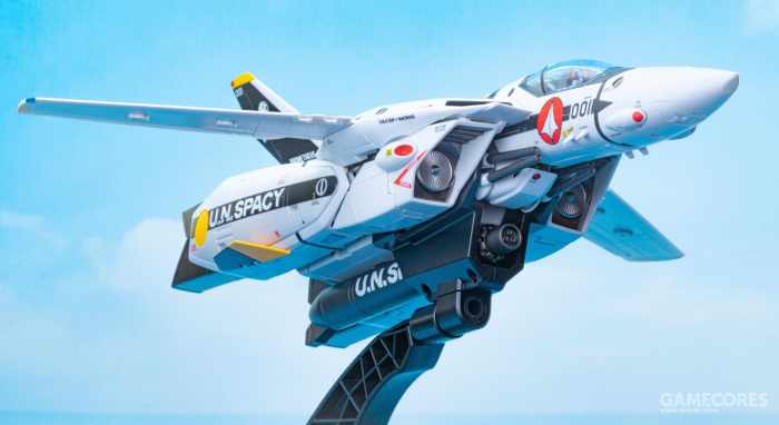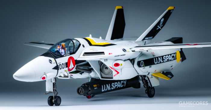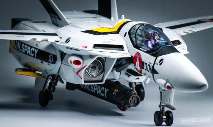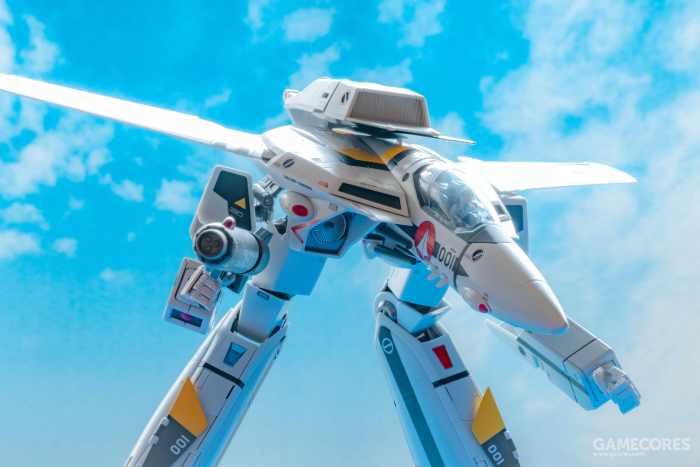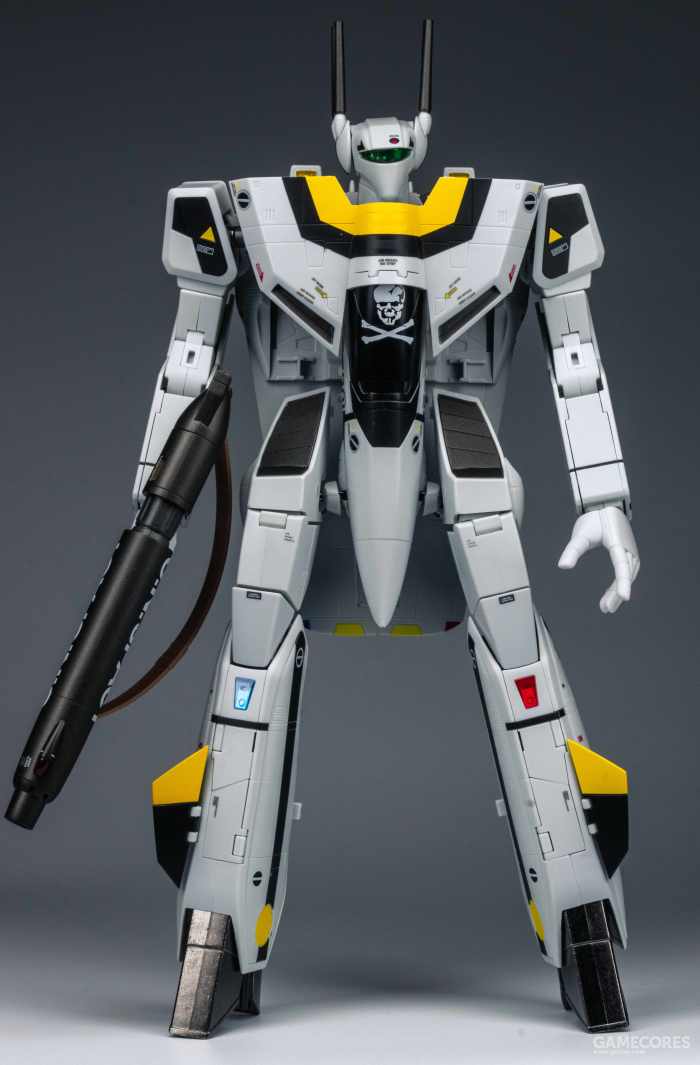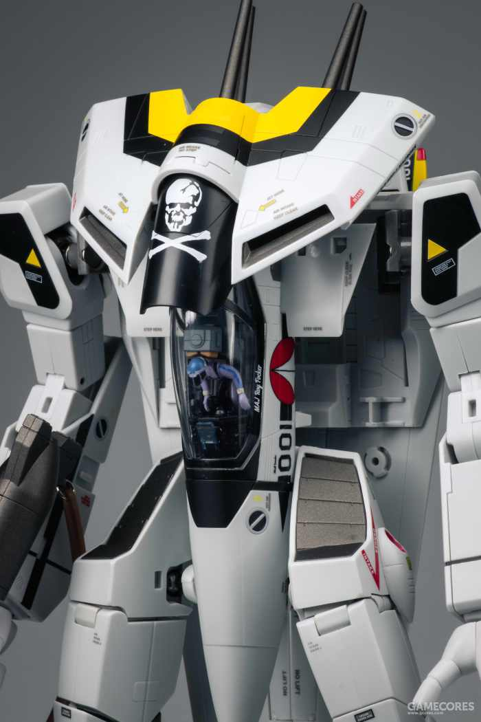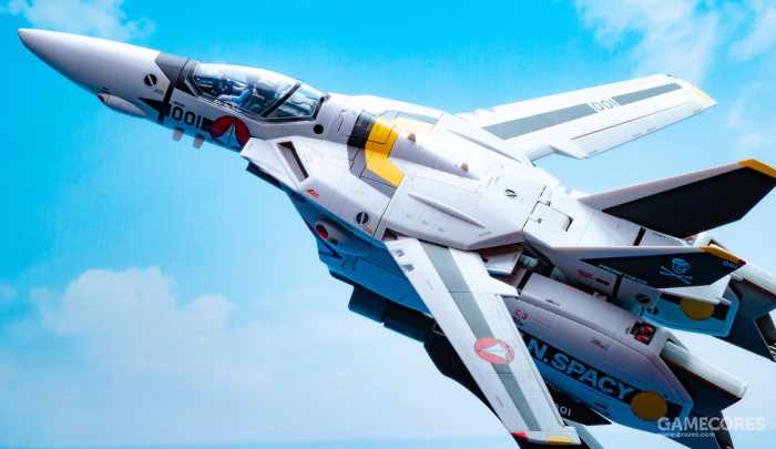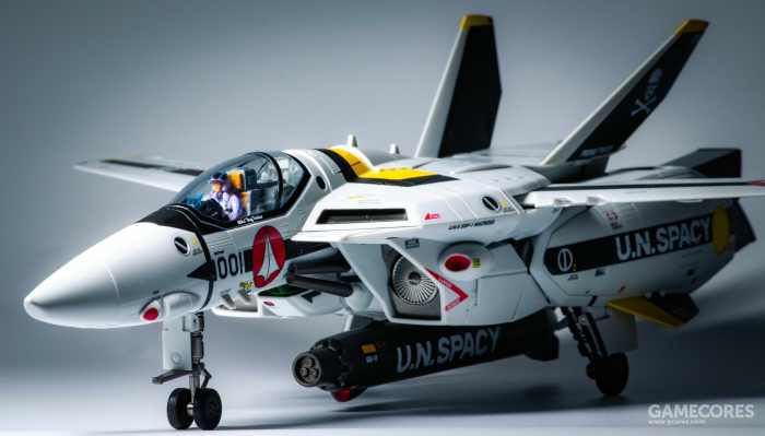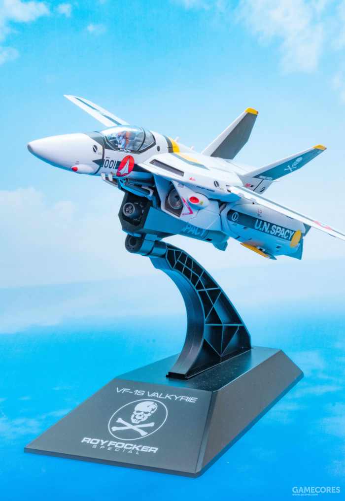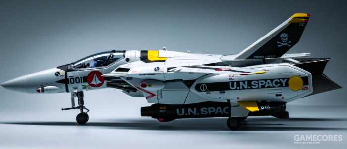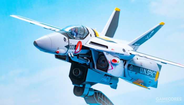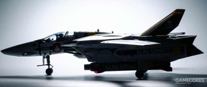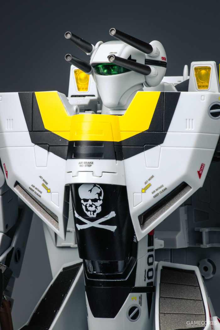 而今天我们要重点把玩体验的机型,就是骷髅小队的队长罗伊 ‧ 福卡在初代《超时空要塞》中的专用驾座——VF1S。该机型由诺斯洛普生产之少量型号,在大幅翻新航电设备,换装推力更强的FF-2001D热核引擎,头部激光炮也增设为四门。由于VF-1S的造过于价昂贵故产量不多,通常是分散配发于各个中队作为队长机使用。