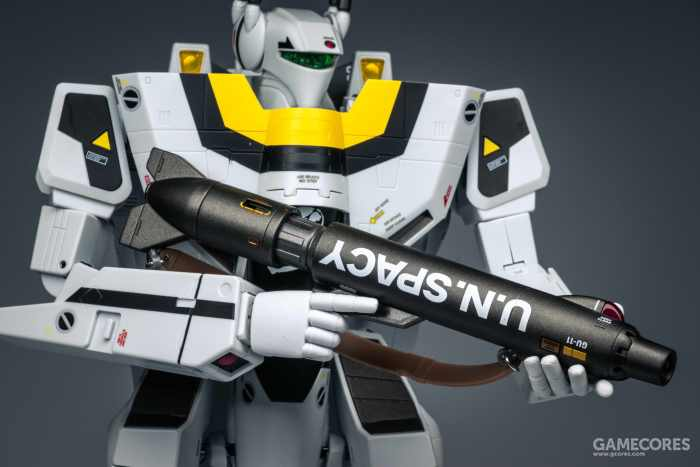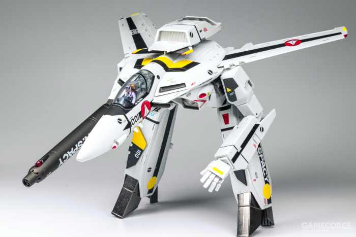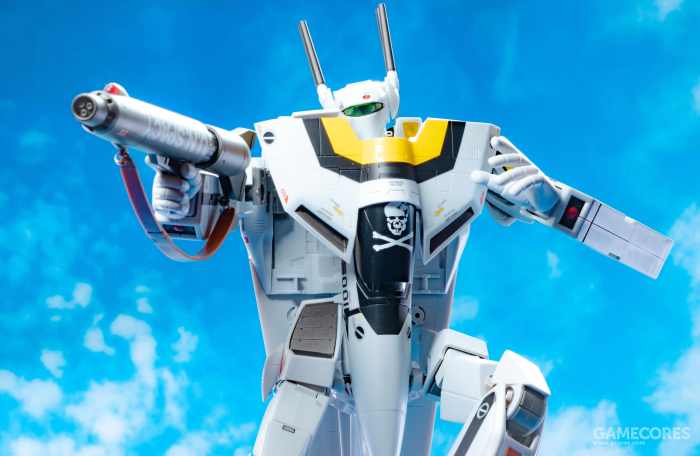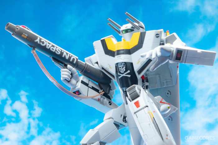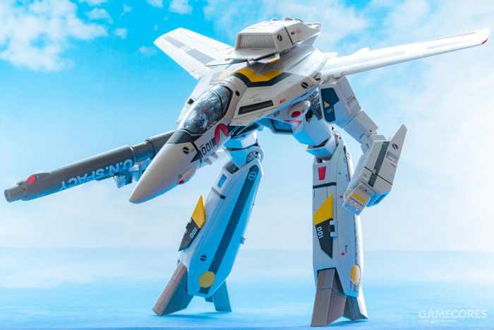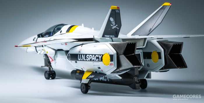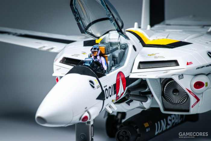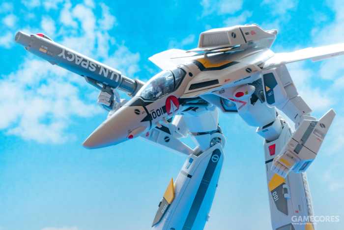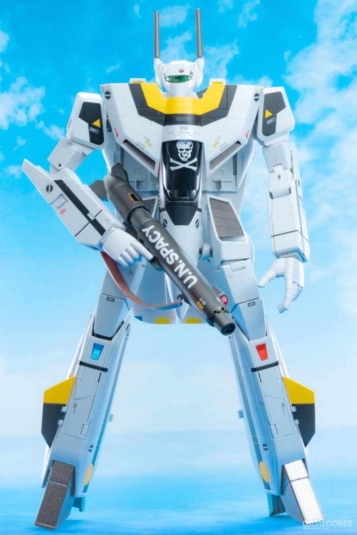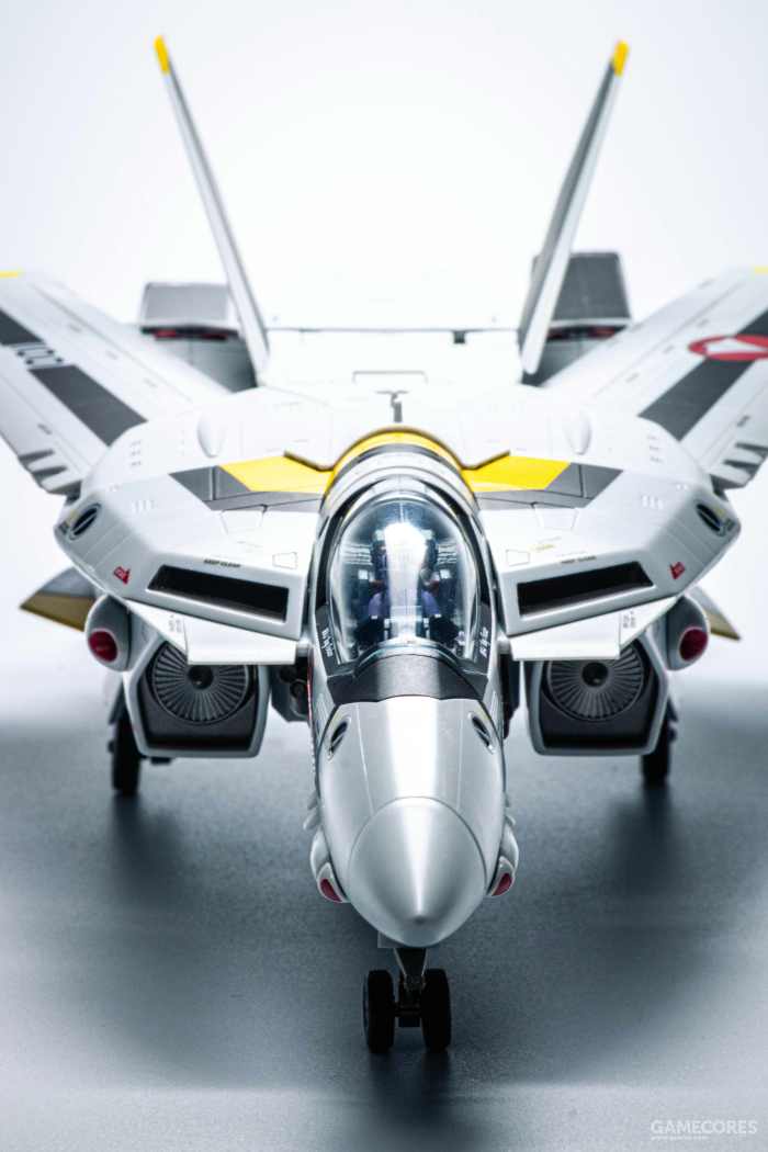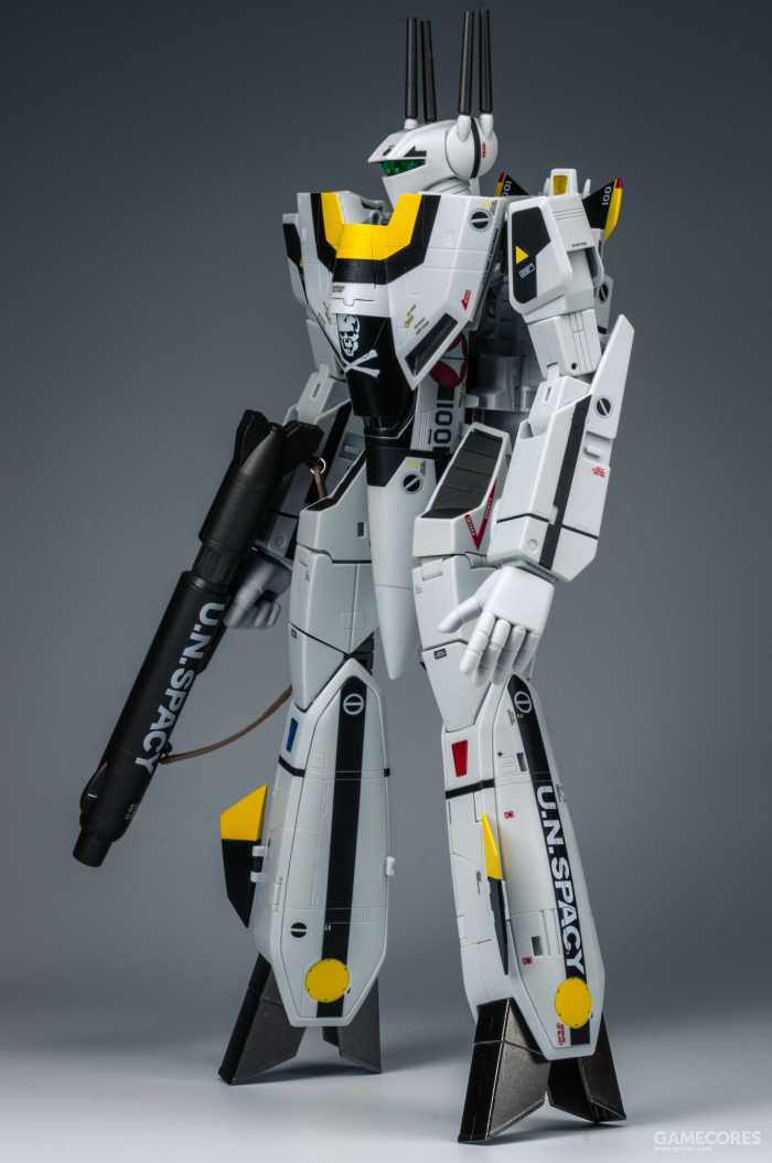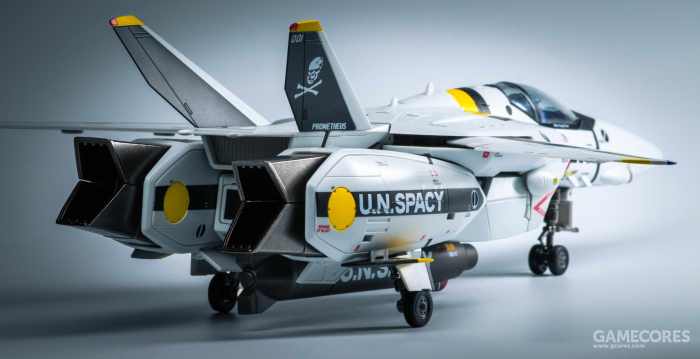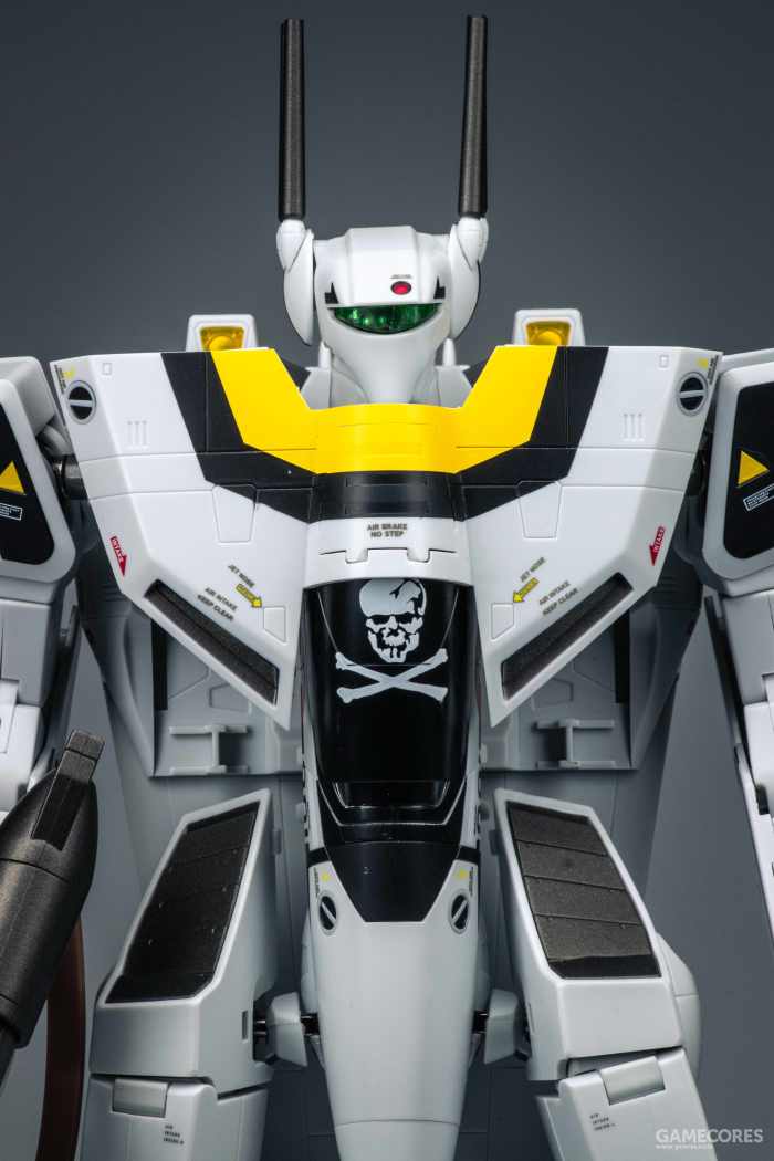 而今天我们要重点把玩体验的机型,就是骷髅小队的队长罗伊 ‧ 福卡在初代《超时空要塞》中的专用驾座——VF1S。该机型由诺斯洛普生产之少量型号,在大幅翻新航电设备,换装推力更强的FF-2001D热核引擎,头部激光炮也增设为四门。由于VF-1S的造过于价昂贵故产量不多,通常是分散配发于各个中队作为队长机使用。