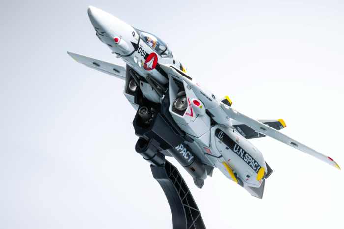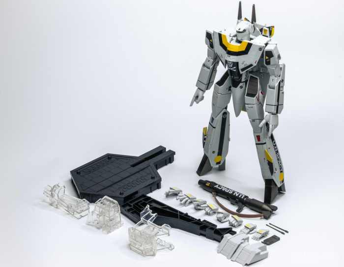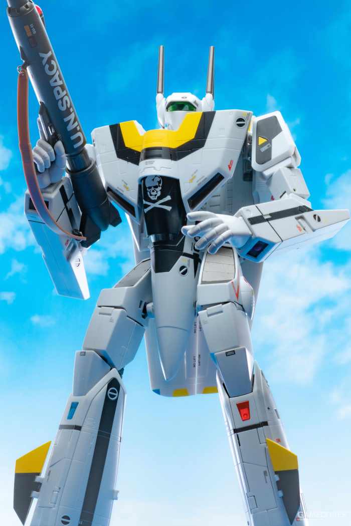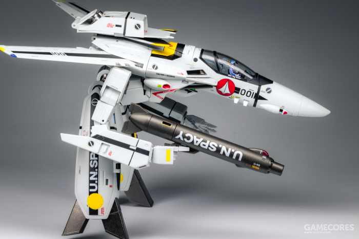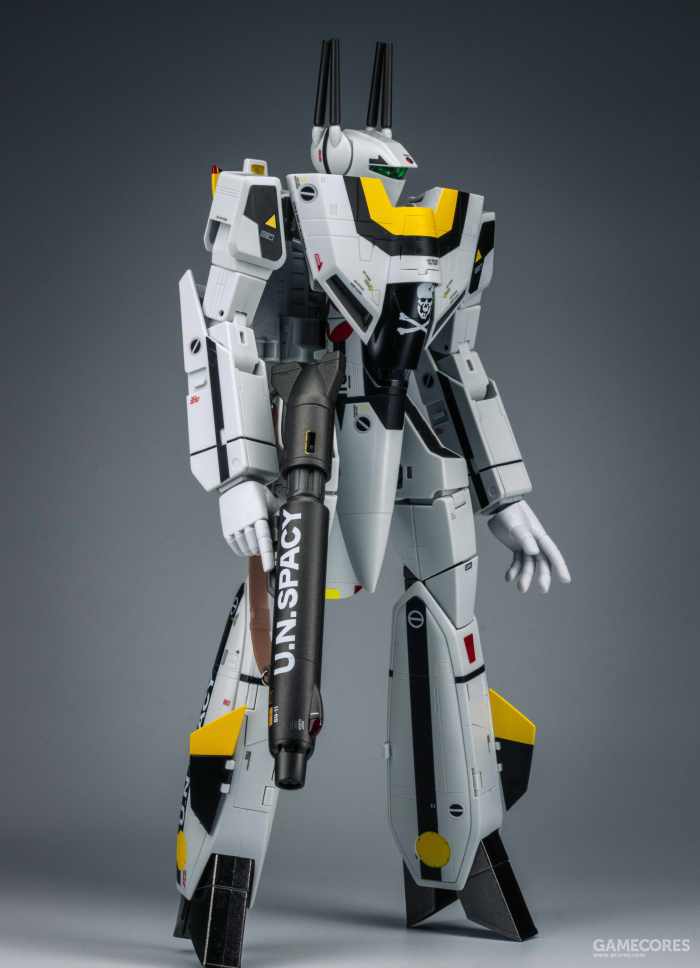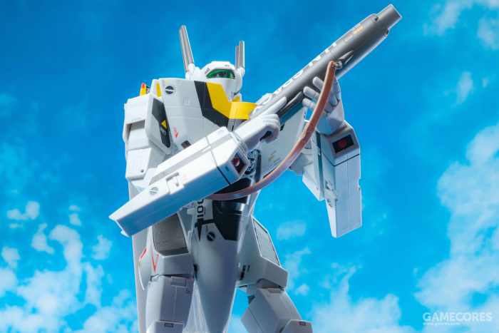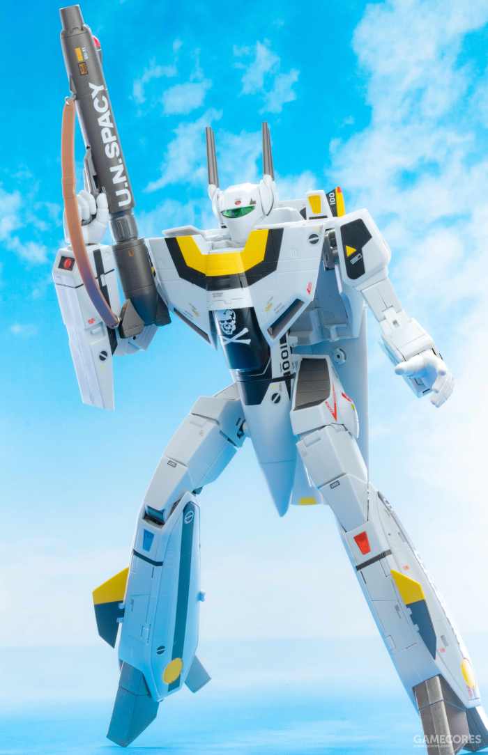 多年以来,我自己一直在各家厂牌里寻觅适合把玩的VF-1S对象商品,然而从未没有找到满意的。之前尝试买过几款万代拼装部的《超时空要塞F》的VF-25模型,遗憾的是由于变形机构的复杂,拼装模型的关节是无法稍微长一点时间来承受其变形强度的,我的拼装系列不是断件就是泛白。很遗憾,我不得不放弃与这条产品系列的亲密接触。之后我也转头寻觅过万代收藏部的Hi- Metal系列,然而其商品线早期的定位甚至我看中的机体都没有办法做到“完全变形”。