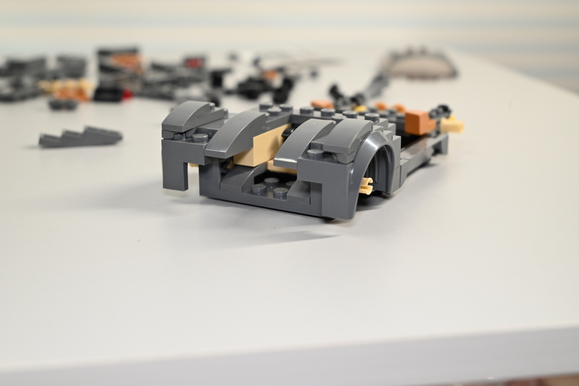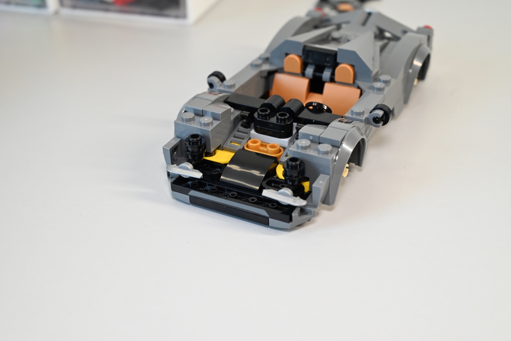 车头部分跟车尾使用了同样的连接件,黑色底板倒置来为车头前唇套件还原做基础。值得好评的是这次的车灯乐高使用了印刷件去做,终于不用自己贴了(乐)