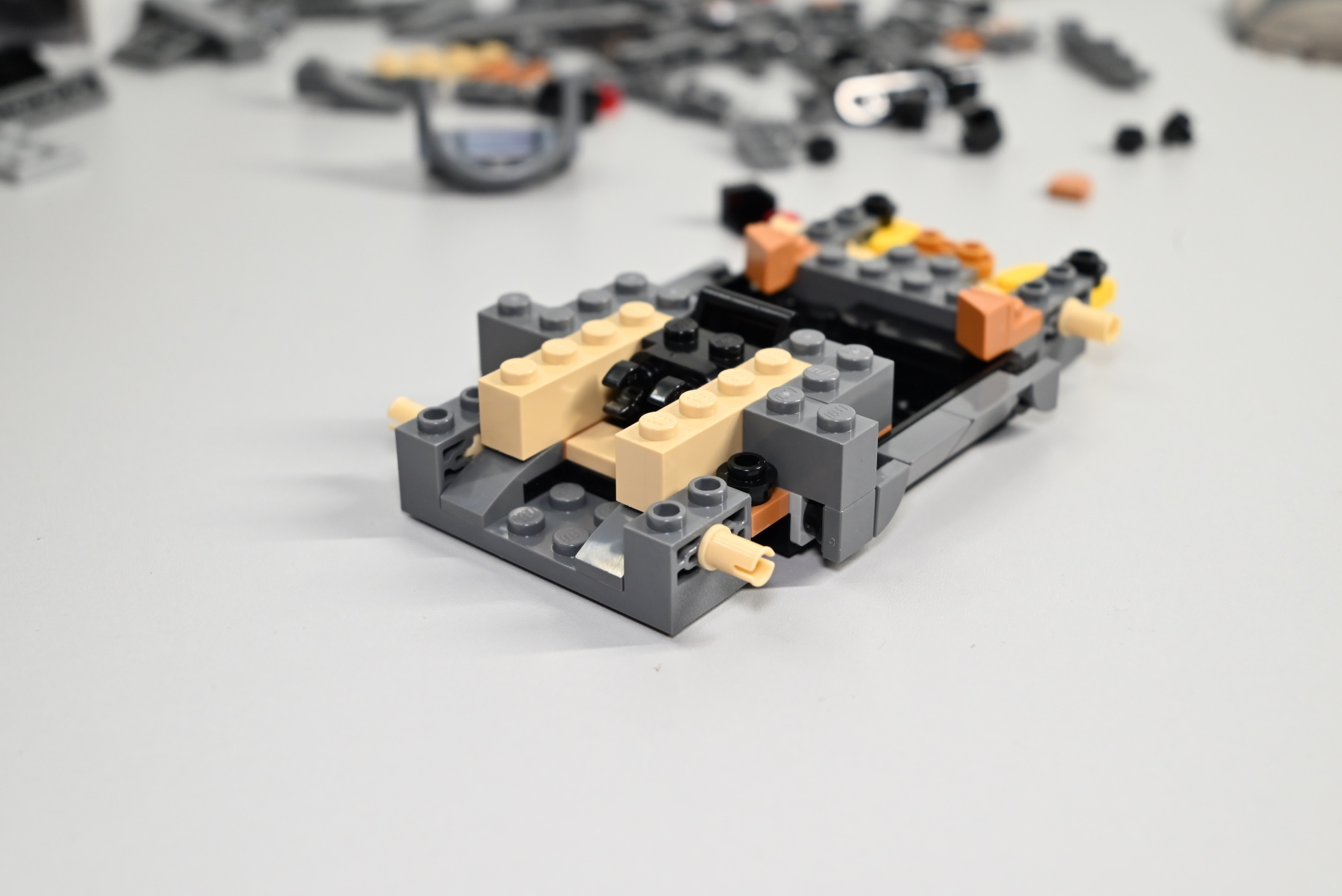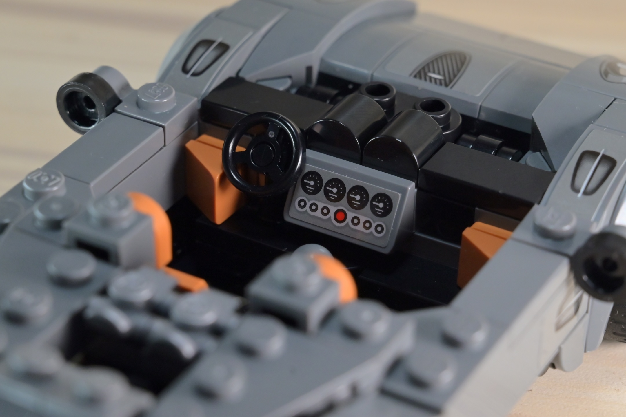 驾驶舱部分则是最让人惊喜的部分。乌托邦整体内饰风格为复古风,因此乐高使用深橙色砖块还原车体内饰。座椅方面还原了靠背,头枕,两个作为中间甚至还原了扶手箱,细节满满。