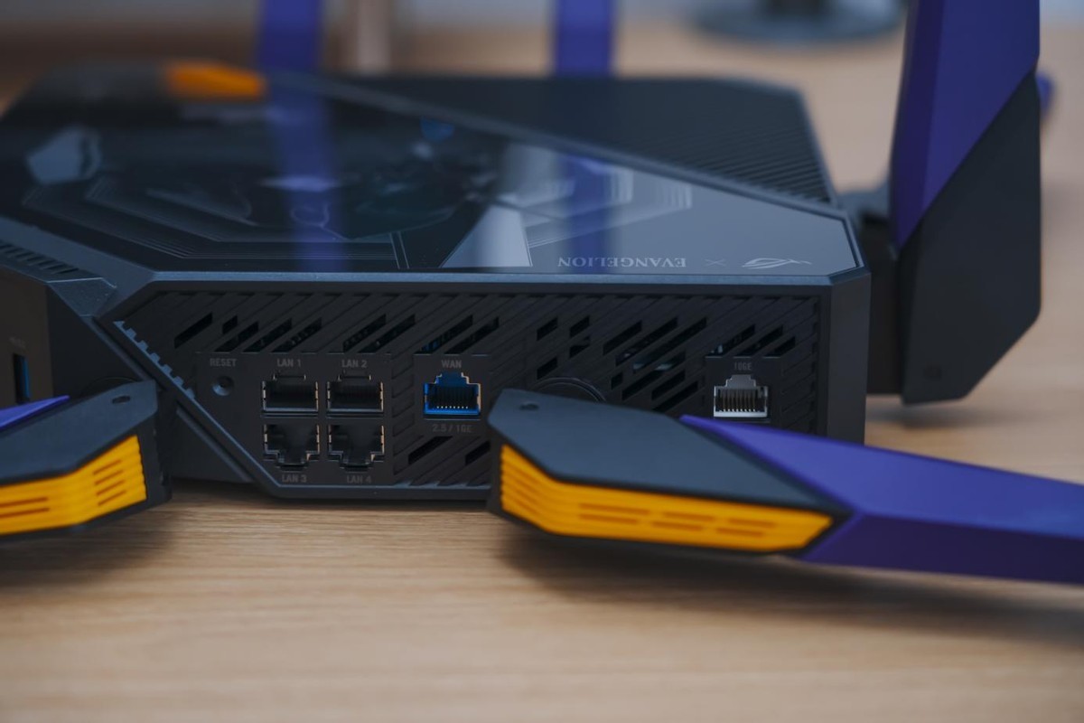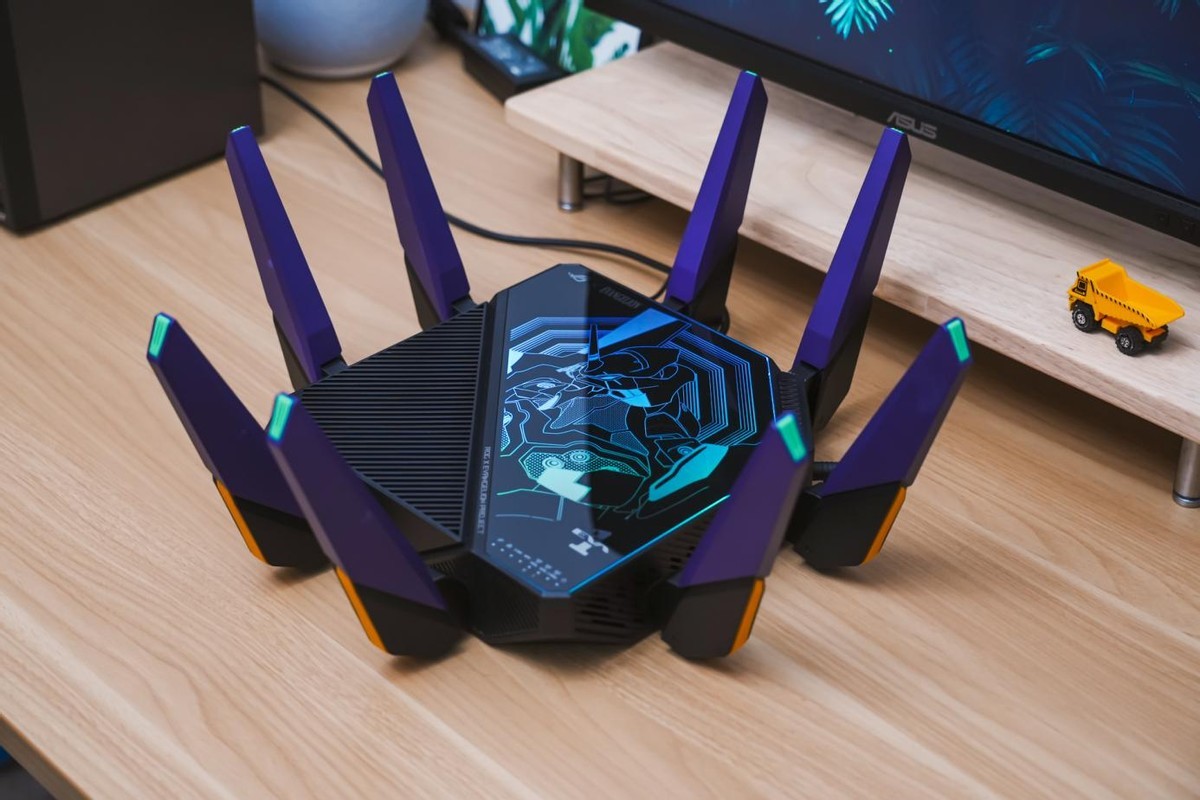 我们使用华硕与《新世纪福音战士》联名设计的 GT-AX11000 Pro 路由器来进行测速。华硕ROG GT-AX11000 Pro 搭载 16nm 的四核 2.0GHz 博通处理器,内存为 1GB,闪存为 256MB。