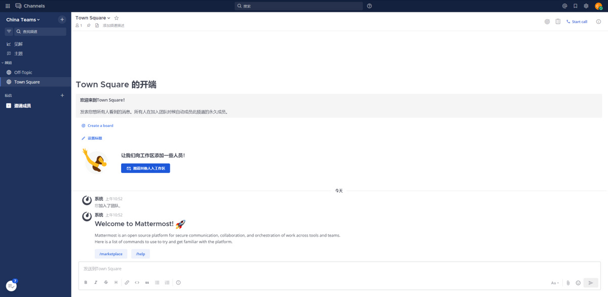 搭建好了,可以任意邀请自己的朋友进来一起聊天,手机上也有mattermost APP,设计的非常好用,具体细节咱们就不多说了,大家如果需要可以自行下载体验。