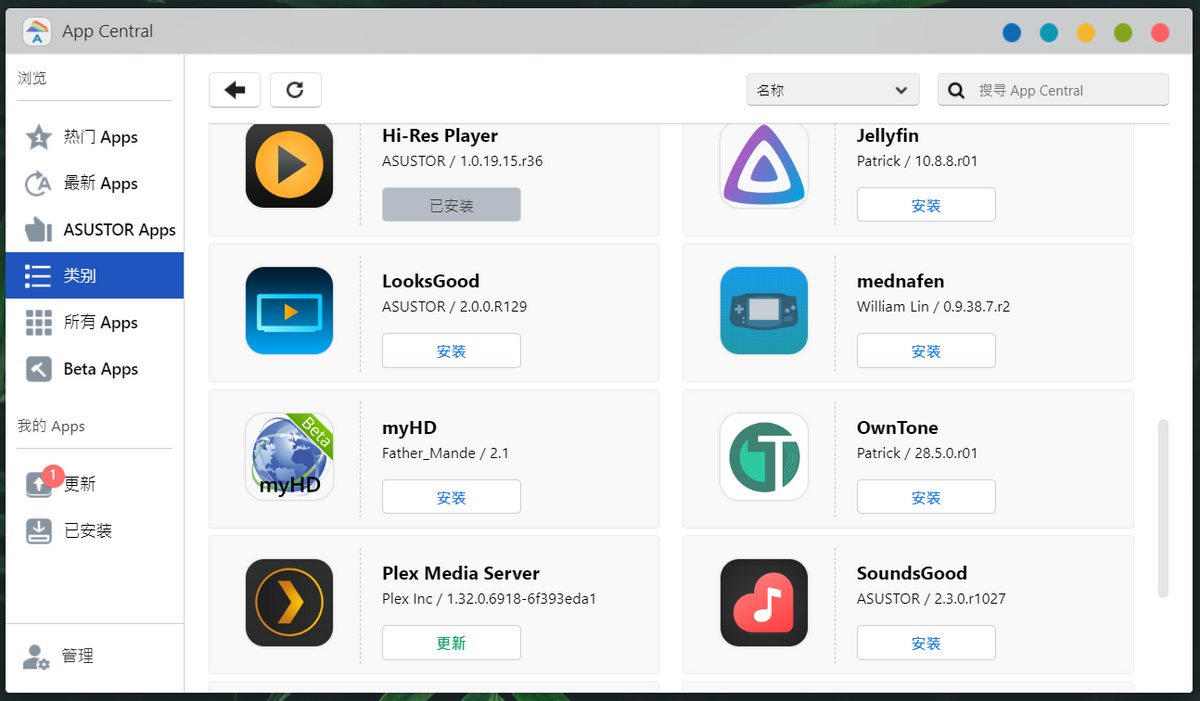 好话再说一遍,所有好用的应用,你都能在华硕App Center应用商店里面找到。比如Plex、Emby、Jellyfin、KODI等等。