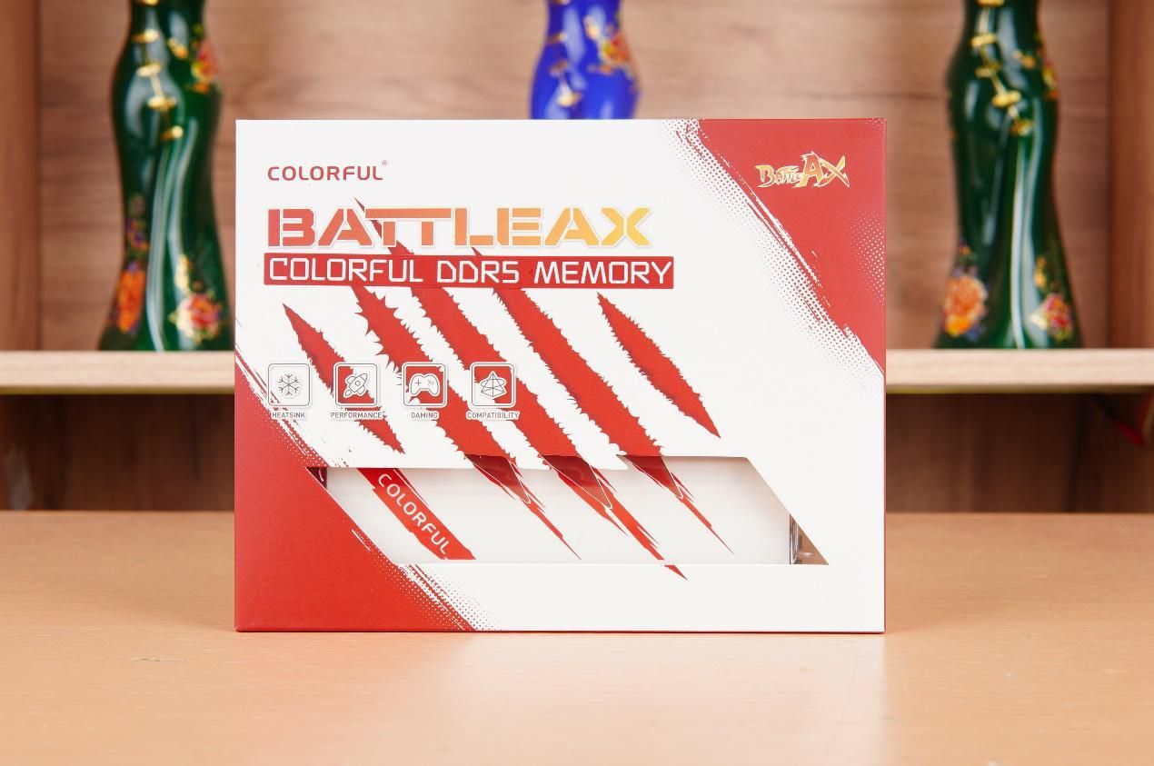 内存方面随着技术的成熟也时间的推移,DDR5内存的价格也终于变得能够令人接受的同时甚至对比同容量的DDR4内存还更有性价比。本次选择的是注重性价比的七彩虹战斧·赤焰DDR5 6000 16G*2内存条,可以看到其外包装风格是非常符合其名字的。