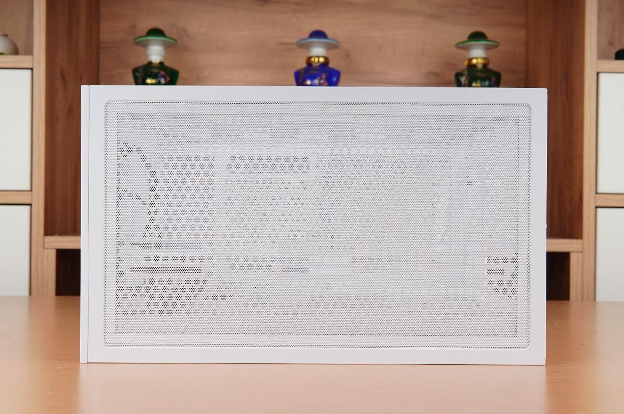 先马易大师进化版的前面板采用了目前流行的网面设计,并且固定方式也采用了卡扣式设计,因此打开也无需大力出奇迹。机箱前部风扇支架最大可以支持360mm规格冷排的安装。