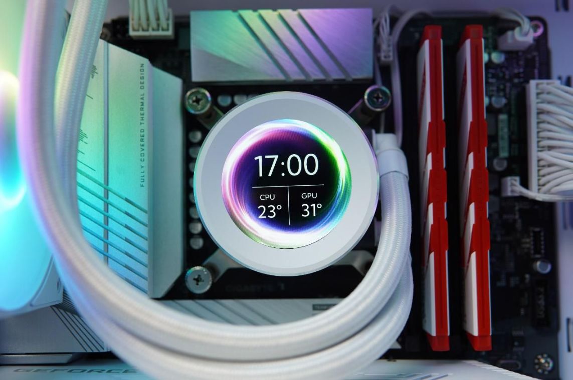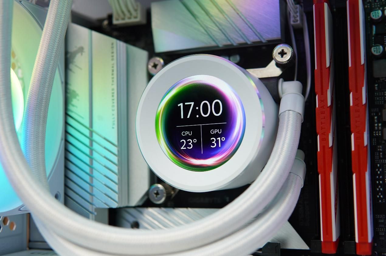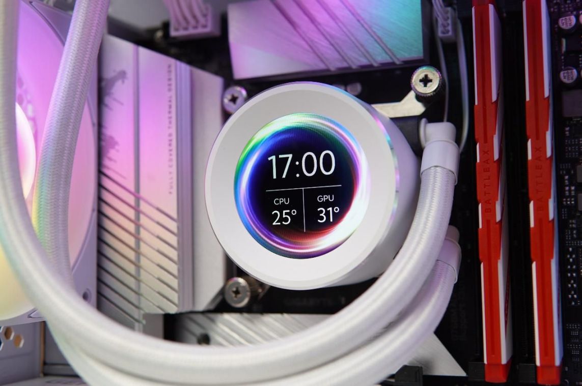 先马XW240系列水冷散热器最大的亮点就是冷头带有一块2.1寸,480×480分辨率的IPS LCD全彩屏幕,得益于如此高的分辨率其显示效果细腻度非常的高。