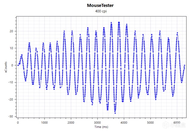 通過鼠標的離散圖可以看見,鼠標的調教還是很好的,離散程度很有規律,沒有很大的出入區別。