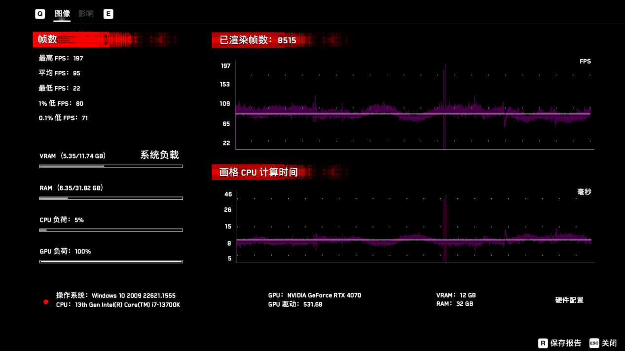 2K分辨率最高画质平均138帧,4K 平均75帧
