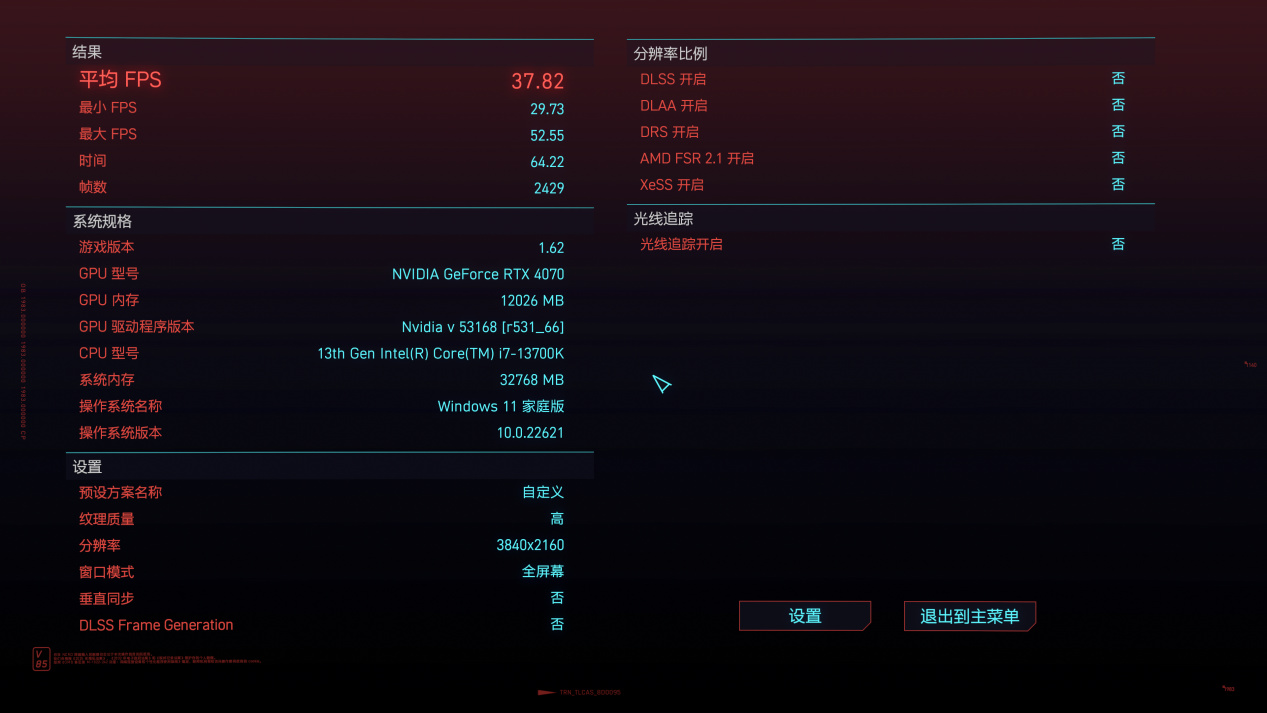 赛博朋克2077的4K游戏性能有点令人费解,我还多次测试,平均FPS都在38左右,有点奇怪。
