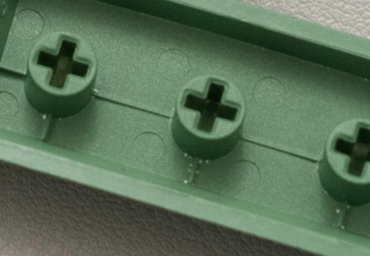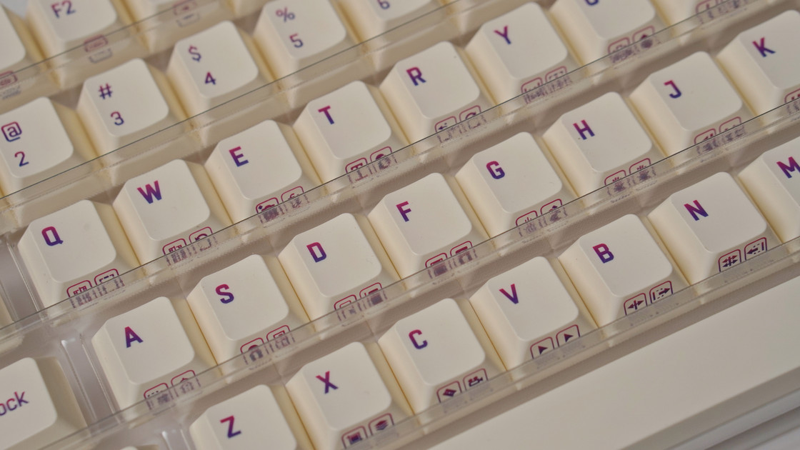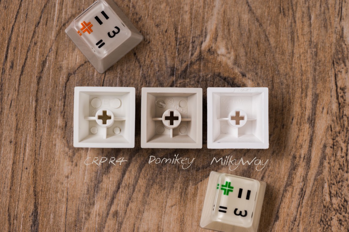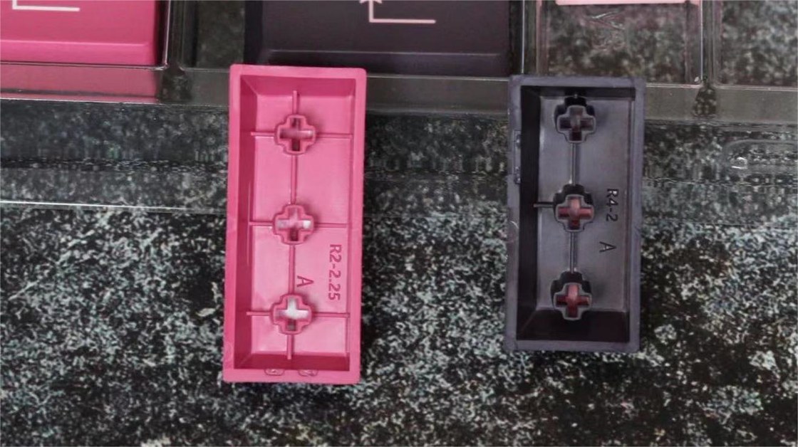 此處留白和十字孔內的留白表面該工藝是將顏色染在鍵帽上,而非注塑上色,而字符顏色正是素材底色。
