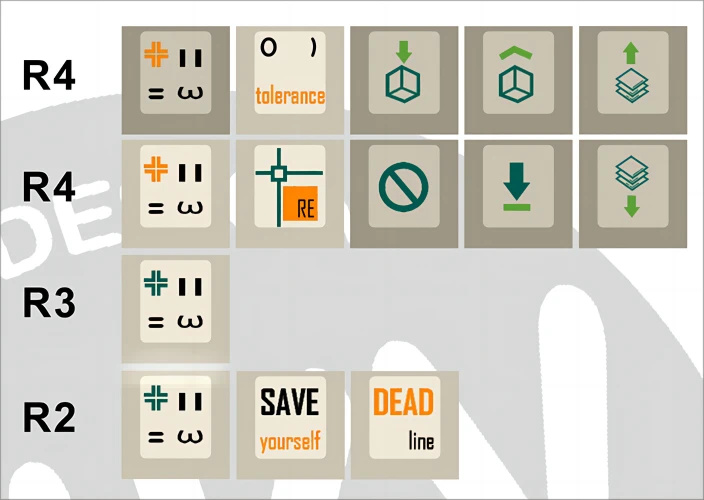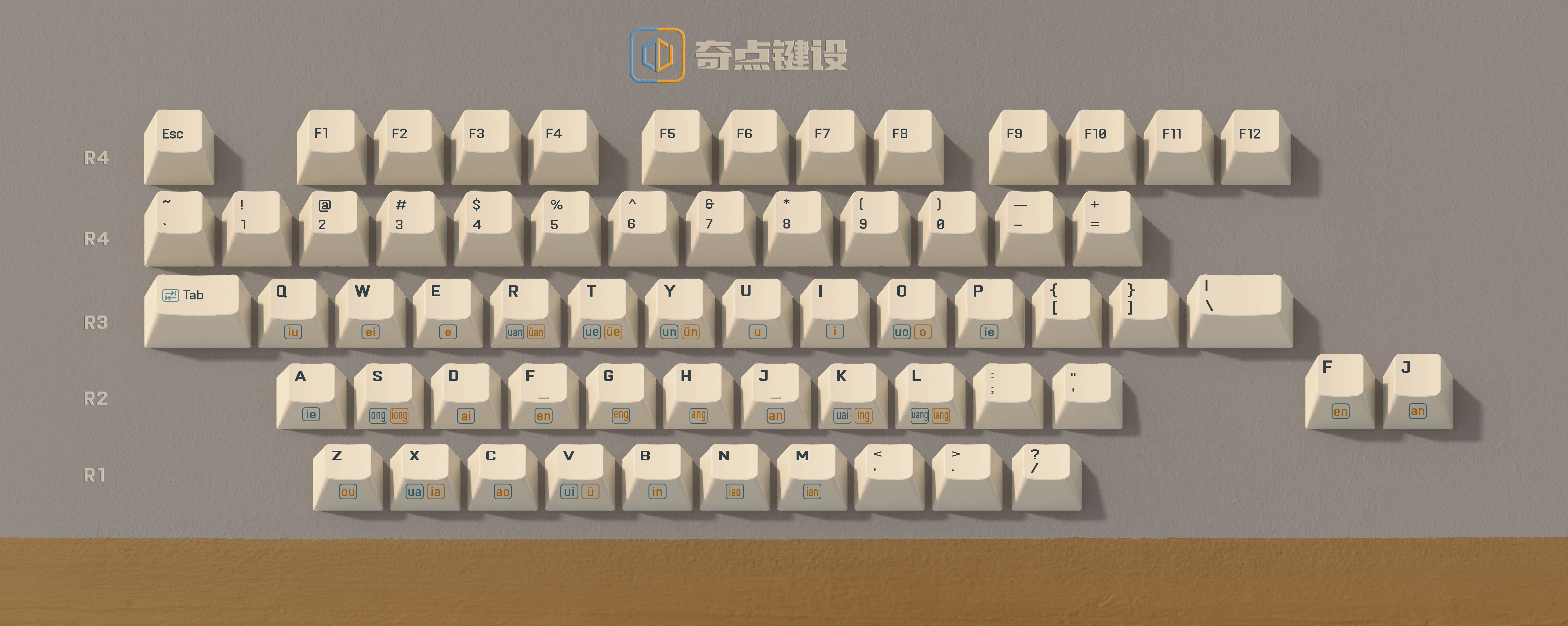 具體鍵位,包含R4-1U、R3-1U、R2-1U、R1-1U標準鍵以及R3-1.5、R1-1.25