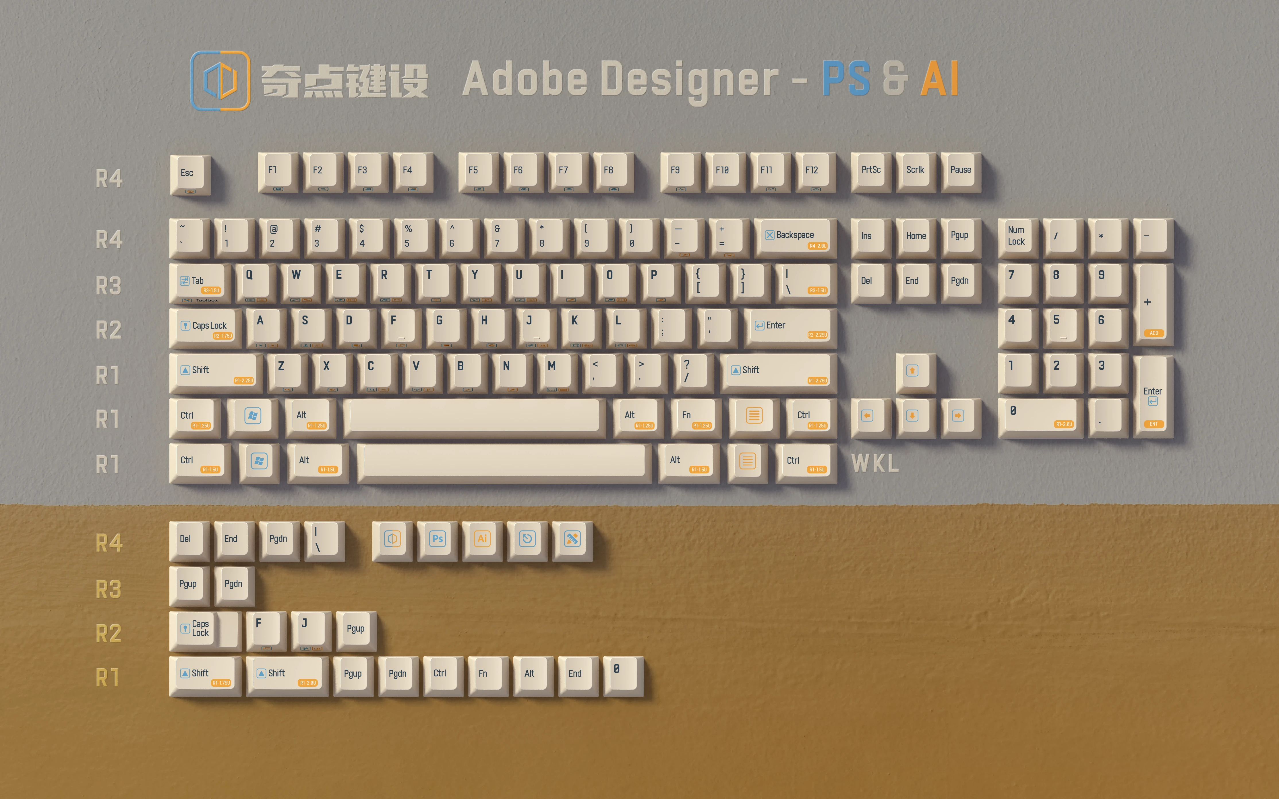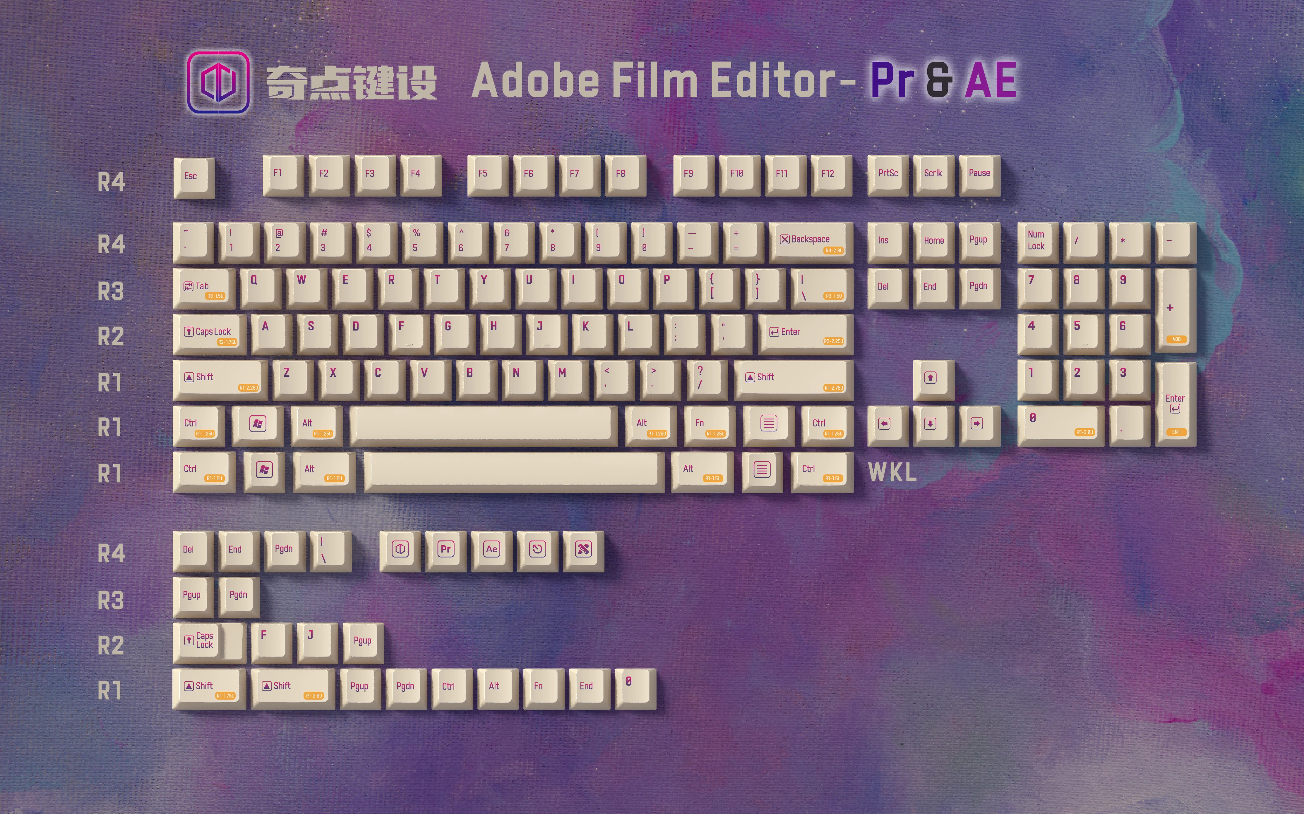 這兩款鍵帽是由鐮刀哥和他的奇點鍵設推出的快捷鍵側刻系列《Adobe Designer》 與《Adobe Film Cutter》