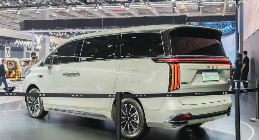 魏牌也進軍了MPV,展示了一款叫“高山”的MPV,不過這款車只有外觀展示,沒有提供上車乘坐,沒法爲大家看第三排的情況。