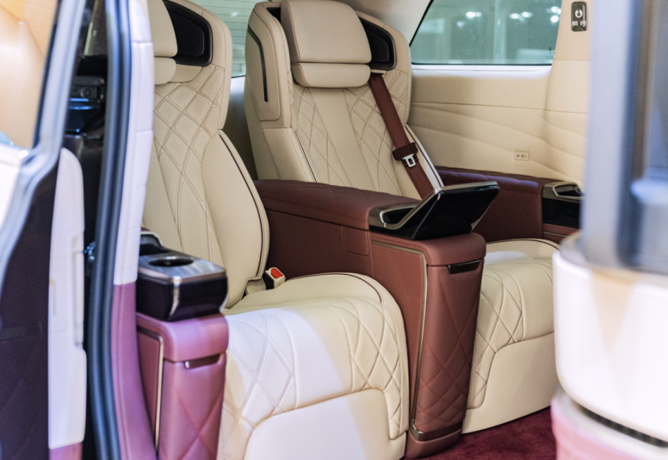 此外,這次D9還推了一個“至尊版”,只有四座,有大電視。據說這款還是船伕哥親自設計的,車主有問題可以和他直接交流,目標就是搶埃爾法,雷爾法這類的市場。埃爾法加價嚴重,安全性也比較差,希望D9至尊能挑起中國高端MPV的大梁,讓埃爾法價格迴歸正常。