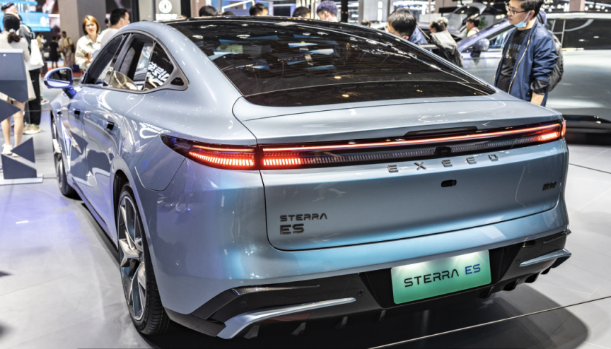 這款車正面相當帥,但是爲了降低風阻,側面顯得有點過於圓滑,類似於奔馳EQS那種設計,不過電動尾翼開啓之後,還是挺帥的。