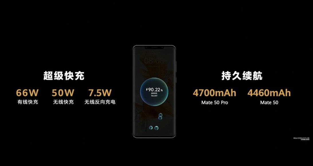 華爲Mate 50系列支持66W有線快充,50W無線快充,7.5W無線反向充電。除了支持66W有線快充,華爲Mate 50系列支持應急模式,根據華爲實驗室測試結果,在1%低電量下智能啓動聚能泵,手機可繼續待機3小時,或通話12分鐘,或亮碼10次,或掃碼4次。